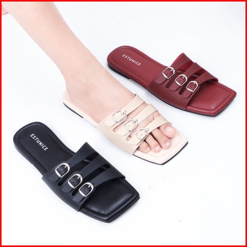 Estunice Shoes - Zea Sandal Teplek Wanita Daily Casual Tali Strap Polos Kekinian Elegan Flat Datar