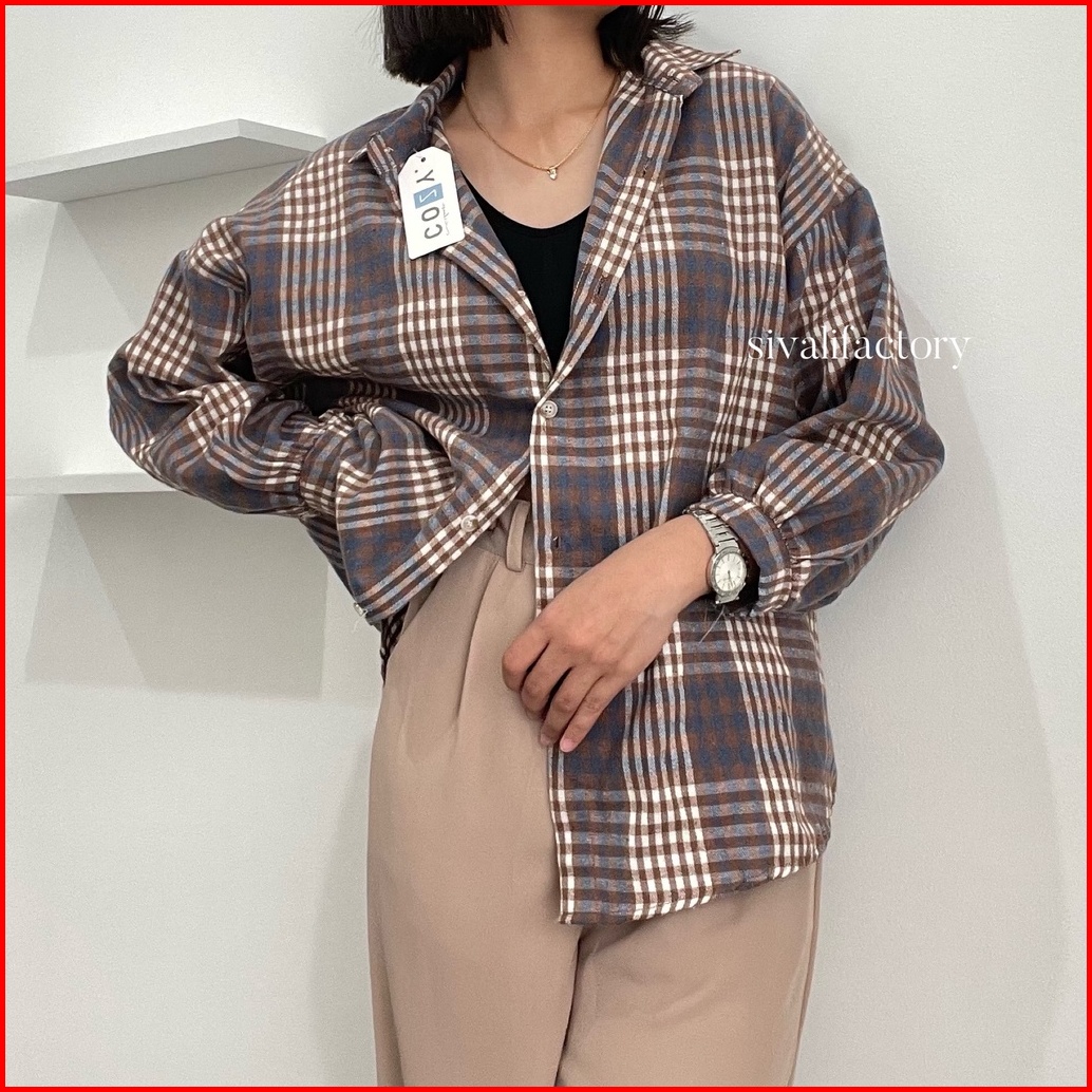 Sivali Kemeja Flanel Blouse Kotak Tartan - Kotak Baju Korean Style Wanita Kemeja Wanita Casual