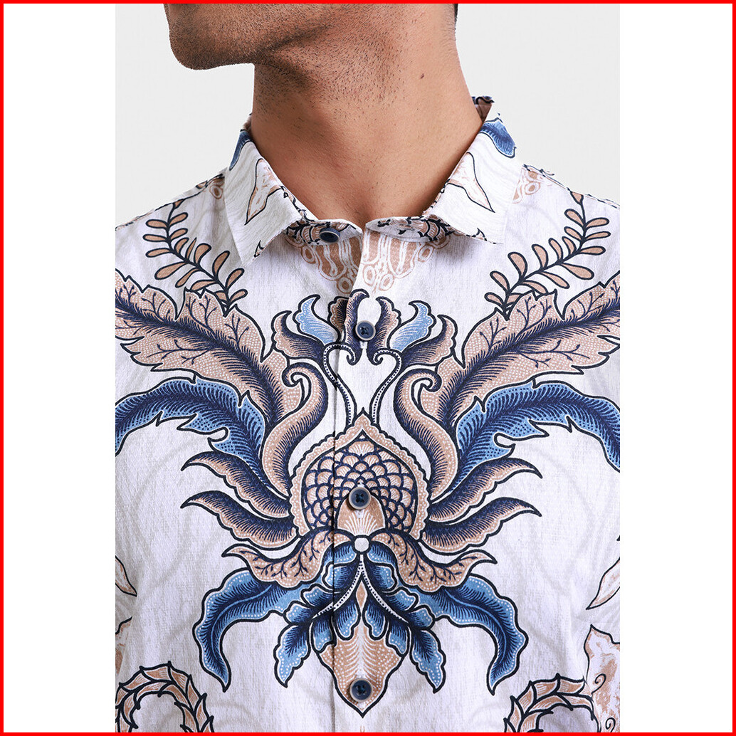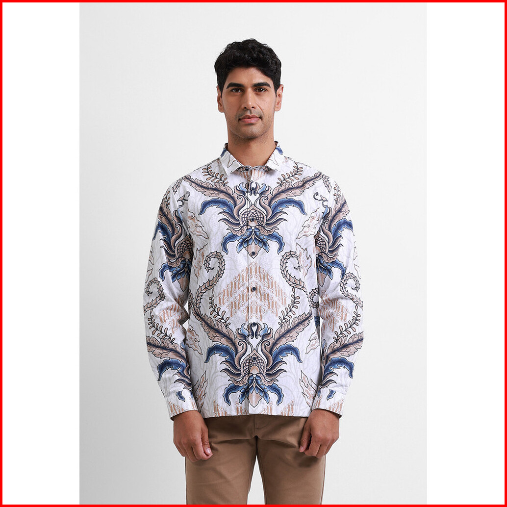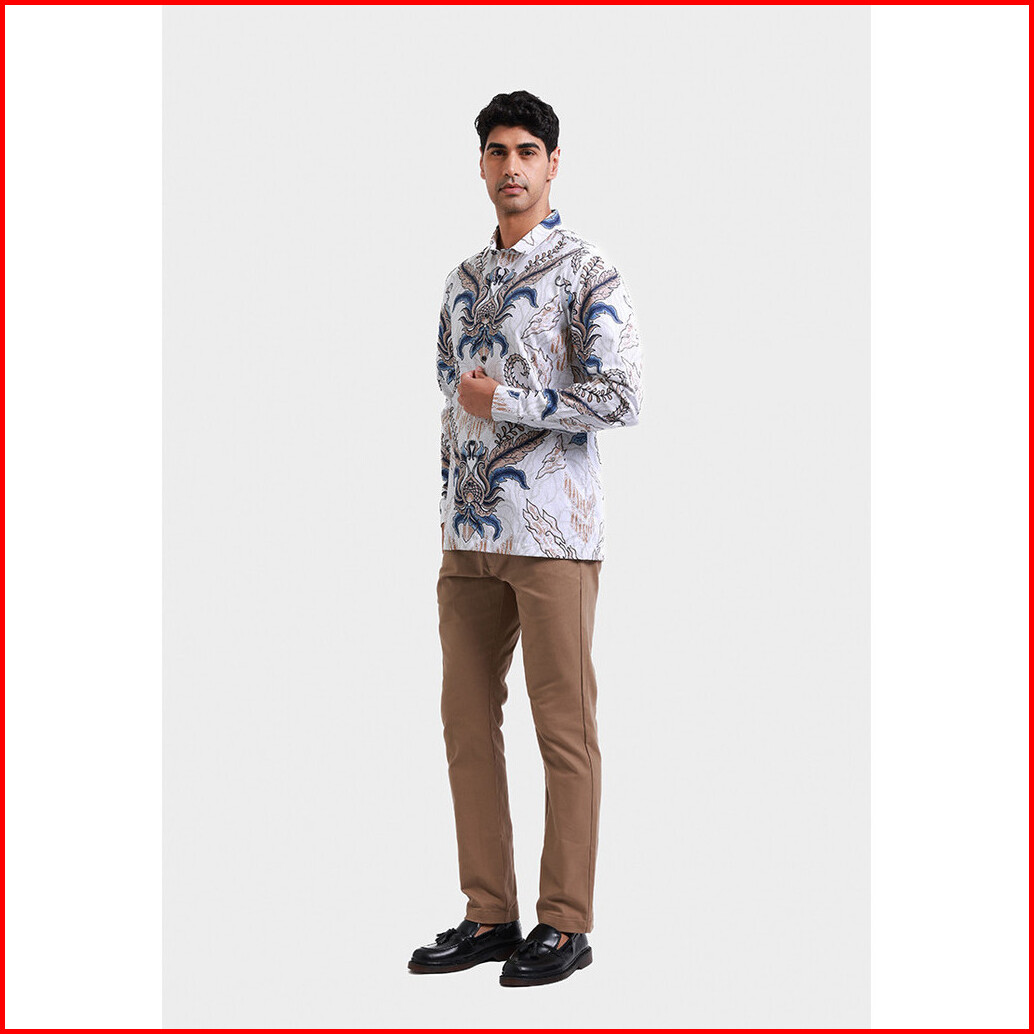 Moc Kemeja Batik Lengan Panjang Pria Purwajaya - White