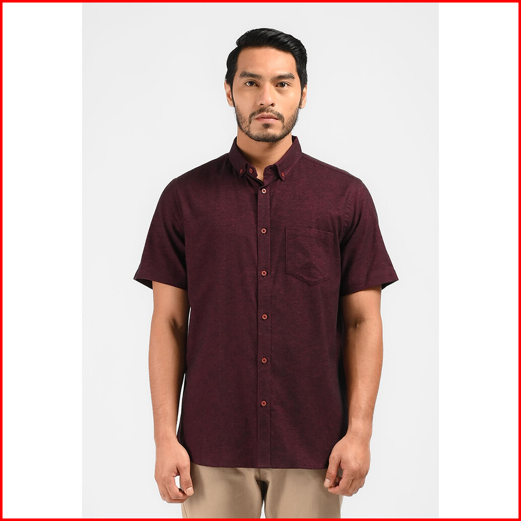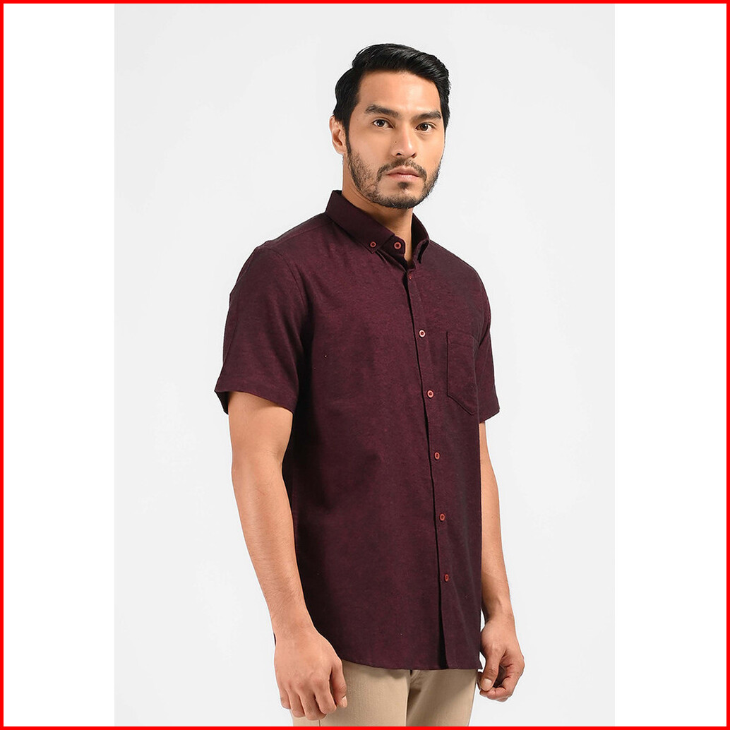 Moc Kemeja Lengan Pendek Pria Malvoy-maroon