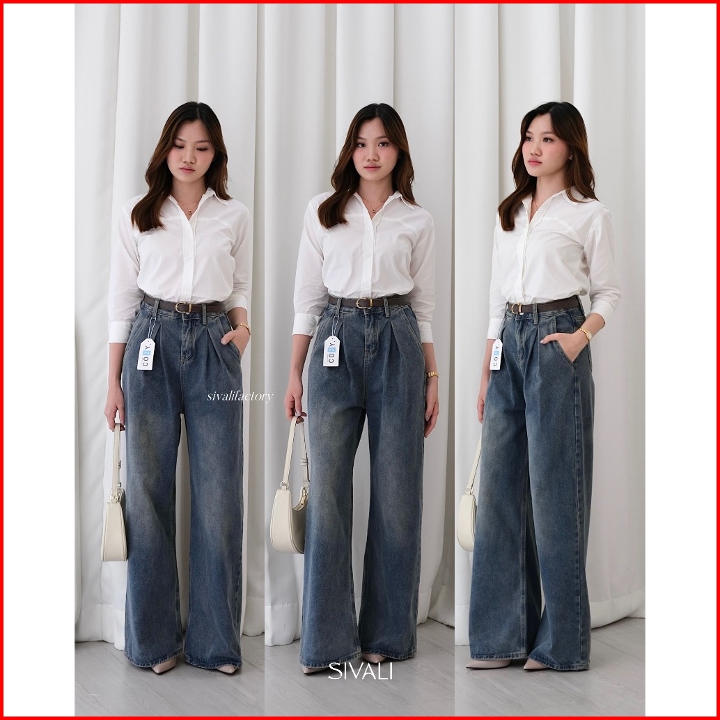 Sivali Urban Jeans - Celana Kulot Jeans Wanita Highwaist Wide Leg Cut Panjang Korea Loose Premium Quality S-xl