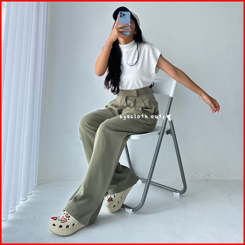 Byacloth Zupa Loose Pants Trousers Wanita Celana Anti Kusut - Celana Kulot Wanita - Celana Kantor Formal Casual
