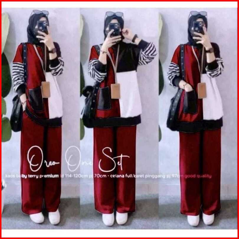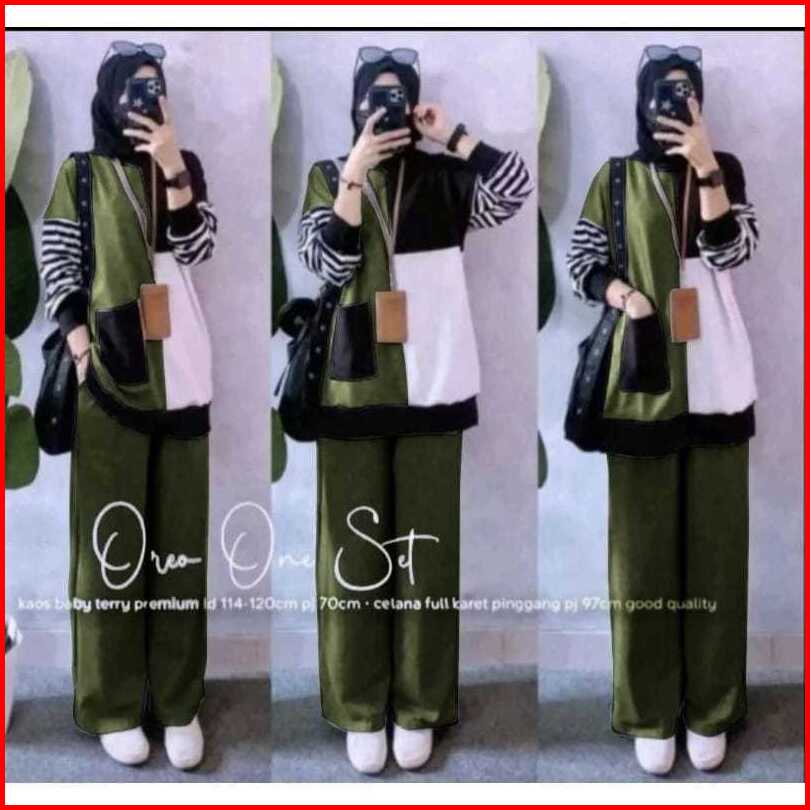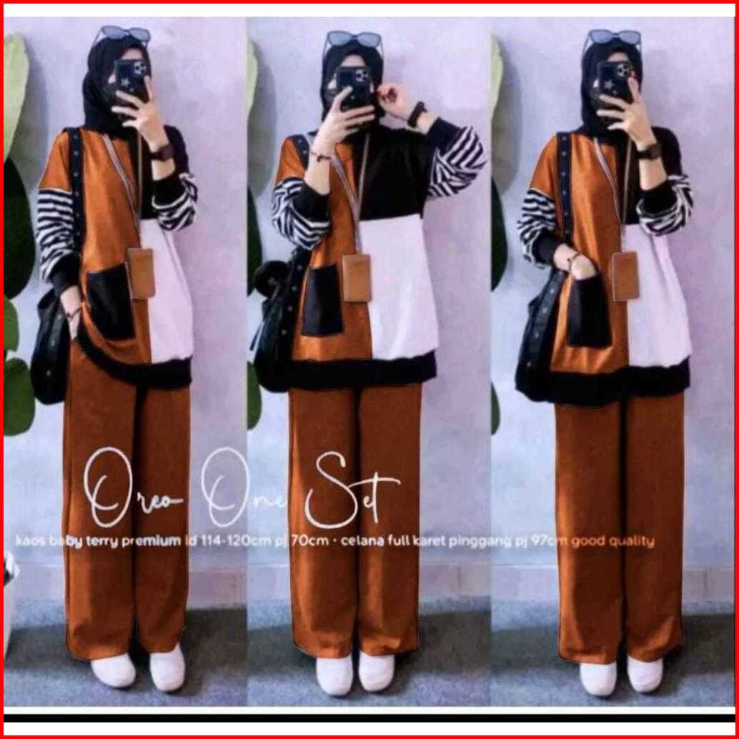 Oreo Set Set Celana Set Baju Muslim Setelan Wanita Casual