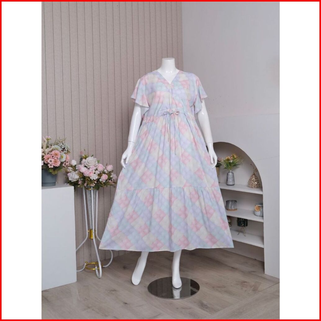 Dress Rumahan Daster Kekinian Raisa Motif Zoraya Rayon Premium Busui Friendly Kancing Hidup Rempel Pundak Dan Dada Canti