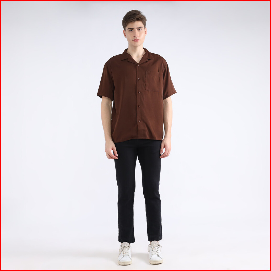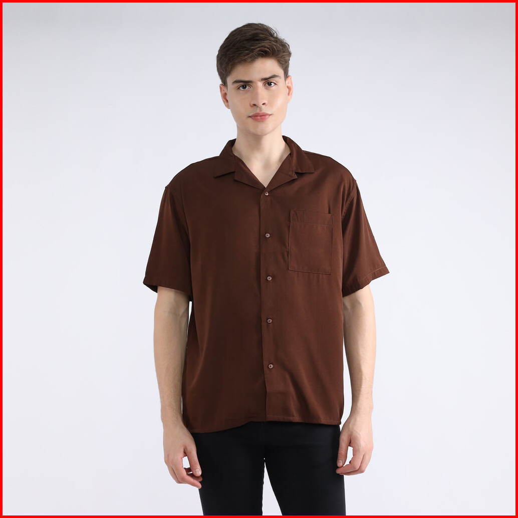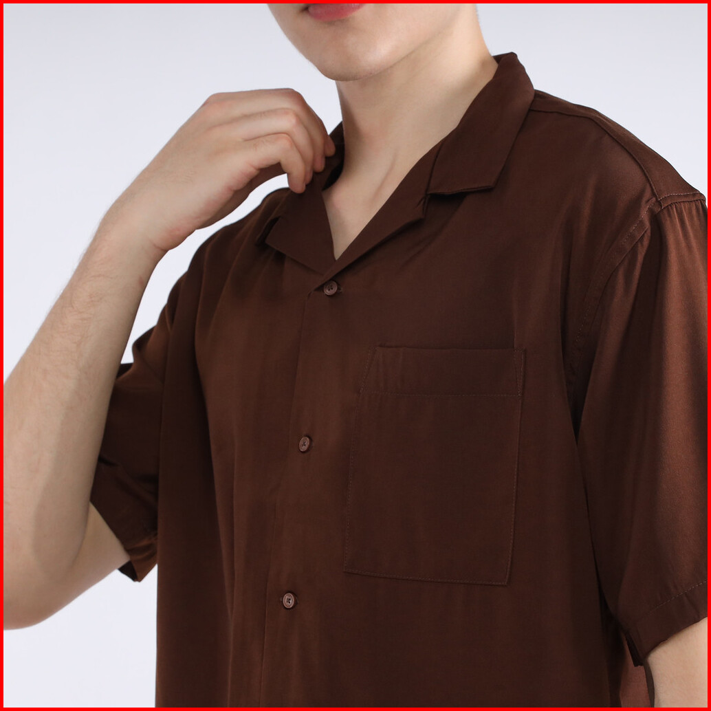 Larusso Kemeja Bowling Pocket Lengan Pendek - Dark Brown