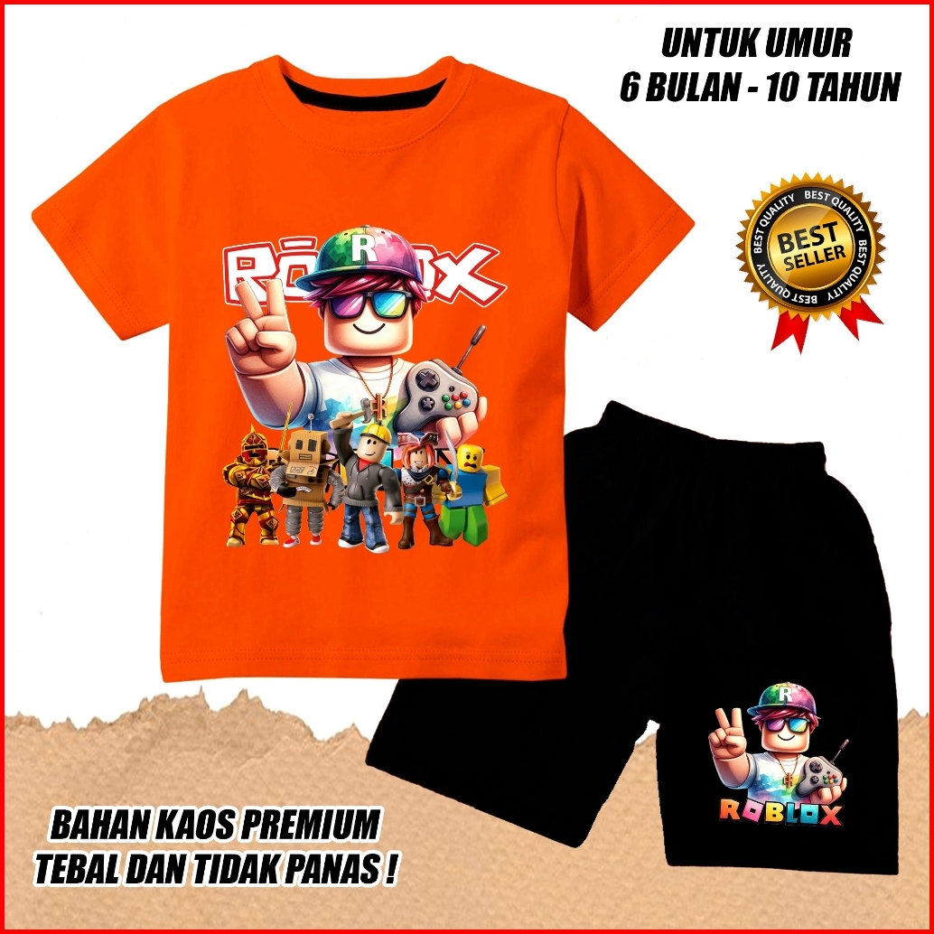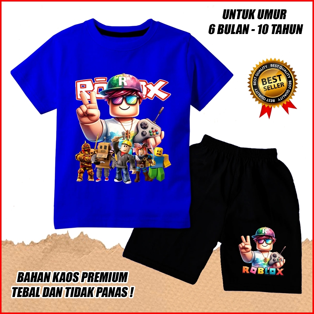 Setelan Lengan Pendek Anak Laki Laki Perempuan Kaos Katun Anak Game Roblox 3 C Hitam