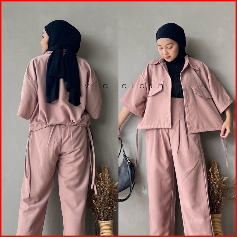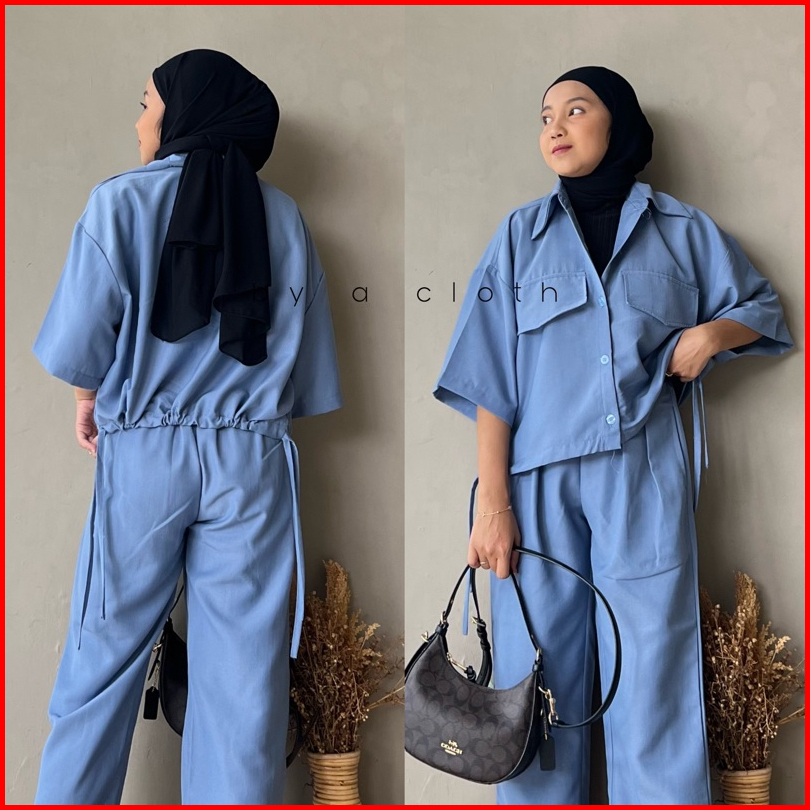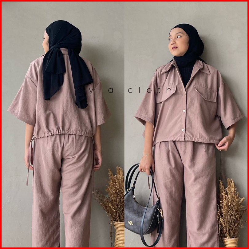 Qamara Kemeja Linen Crop - Kemeja Linen Basic Shirt - Kemeja Wanita Linen Oversize - Shirt Serut