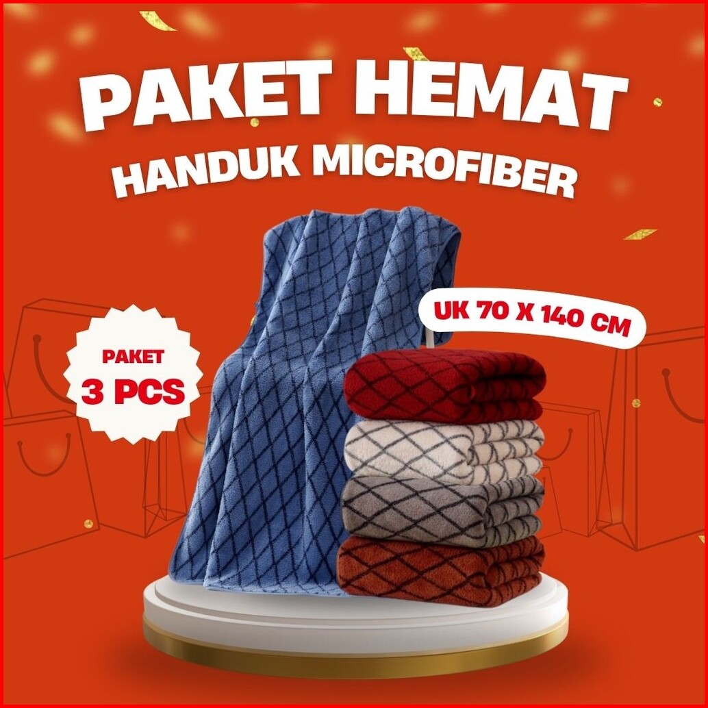3 Paket Handuk Mandi Microfiber Microfiber Ukuran 70x140cm - Sandy Collection