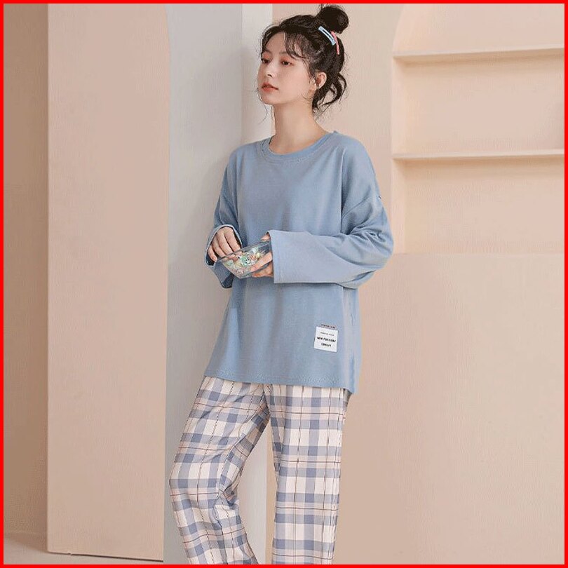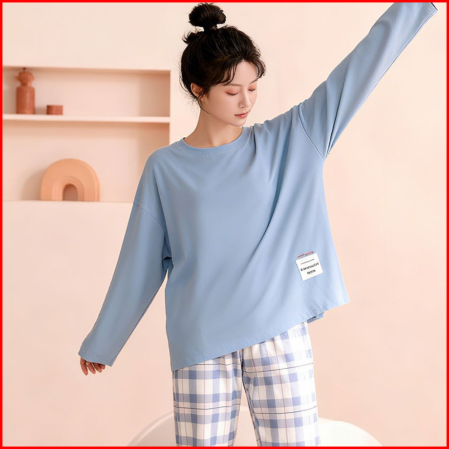 Setelan Piyama Wanita Set Lengan Panjang Baju Tidur Wanita Celana Panjang Setelan Baju Tidur Wanita