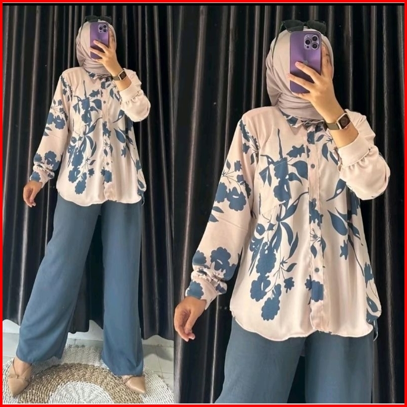 Mylla Flower One Set Kulot Setelan Bunga Kombinasi Crinkle Airflow