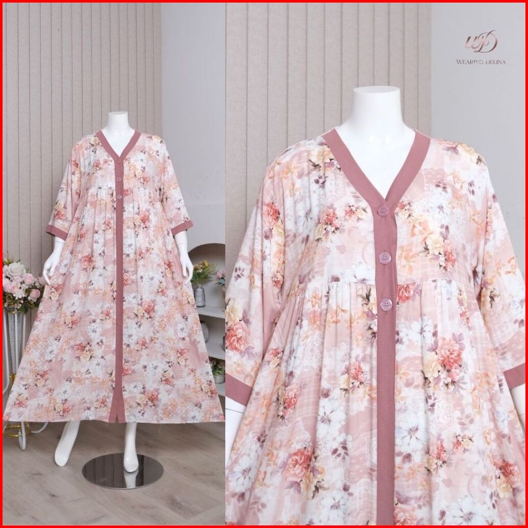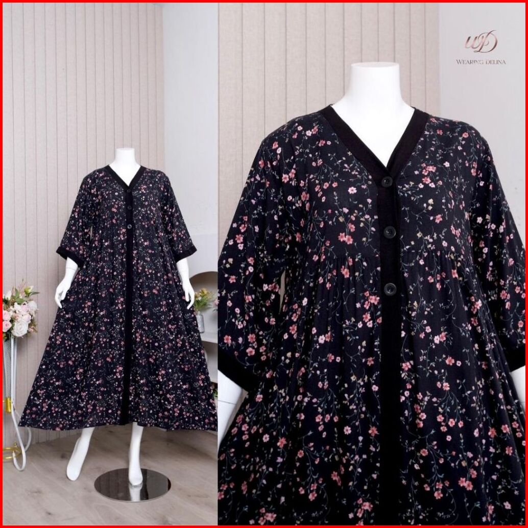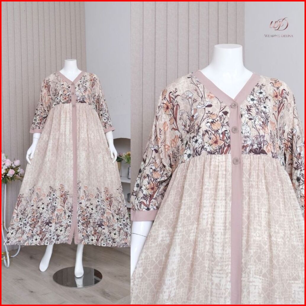Delina- Daster Panjang Busui Bumil Kancing Ld 120 Bonita Series Daster Hamil Daster Kekinian
