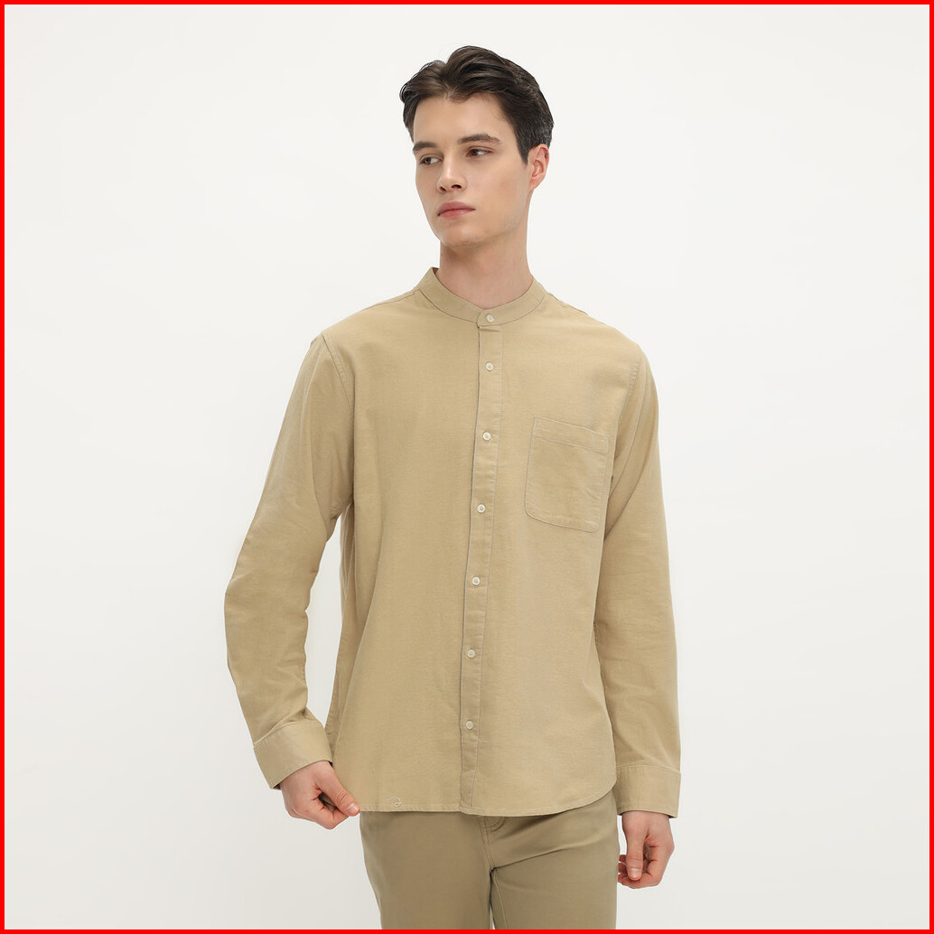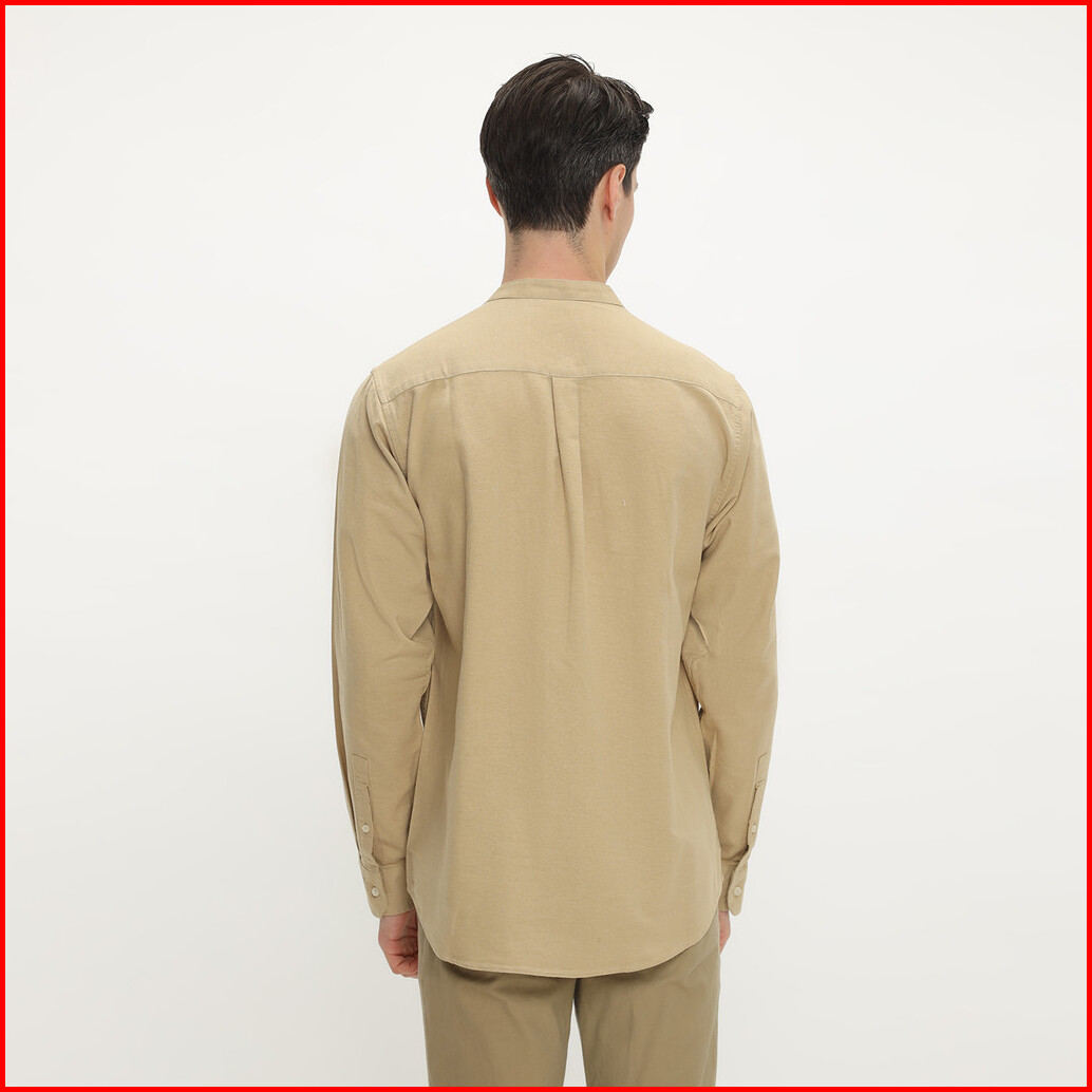 Larusso Khair Collection - Kemeja Koko Rami Basic Polos Pria Lengan Panjang - Cream