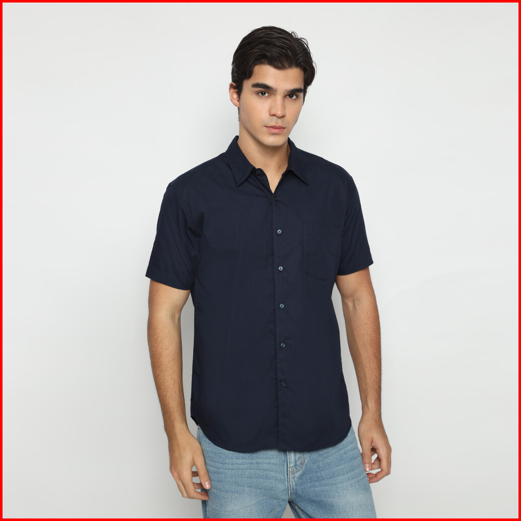 Larusso - Poplin Short Sleeved Basic Shirt - Navy
