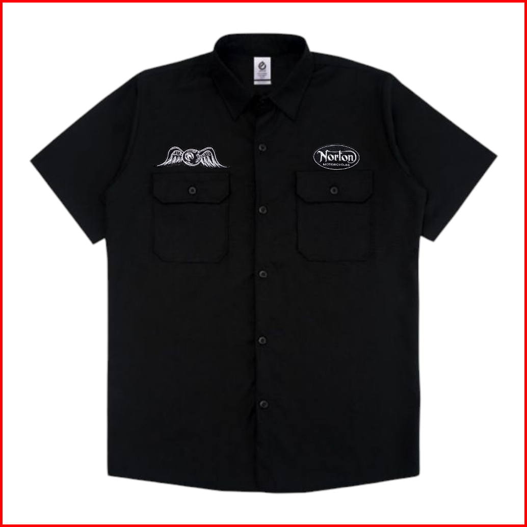 Kemeja Workshit Lengan Pendek Slimfit Pria Dewasa Katun Drill Hitam Bordir Premium Cowok Slim Murah.