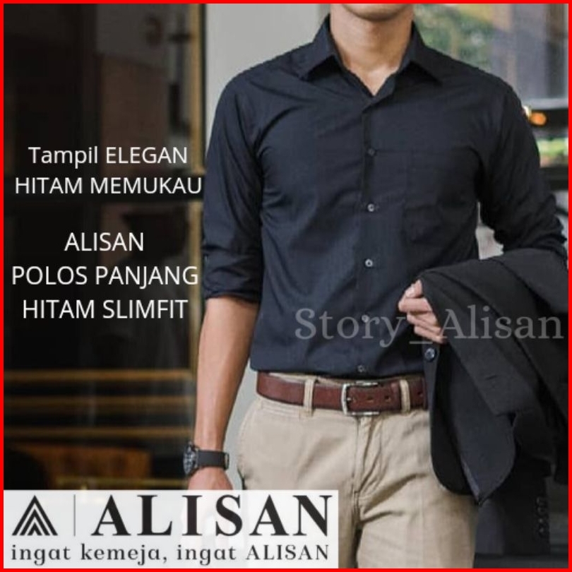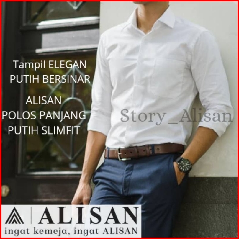 Kemeja Alisan Polos Slimfit Lengan Panjang 100 Ori