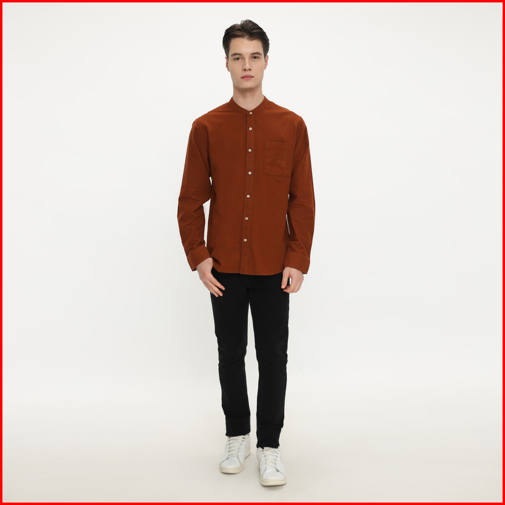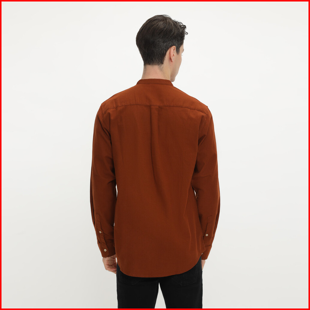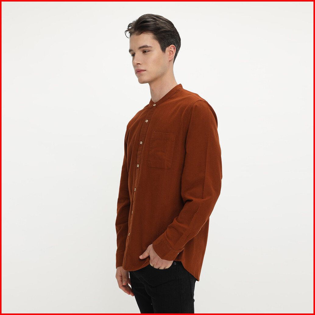 Larusso Khair Collection - Kemeja Koko Rami Basic Polos Pria Lengan Panjang - Brick