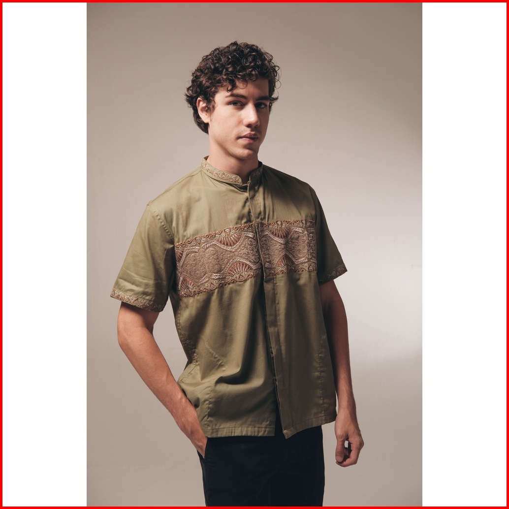 Larusso Big Size Kemeja Koko Bordir Pendek - Army Green L002