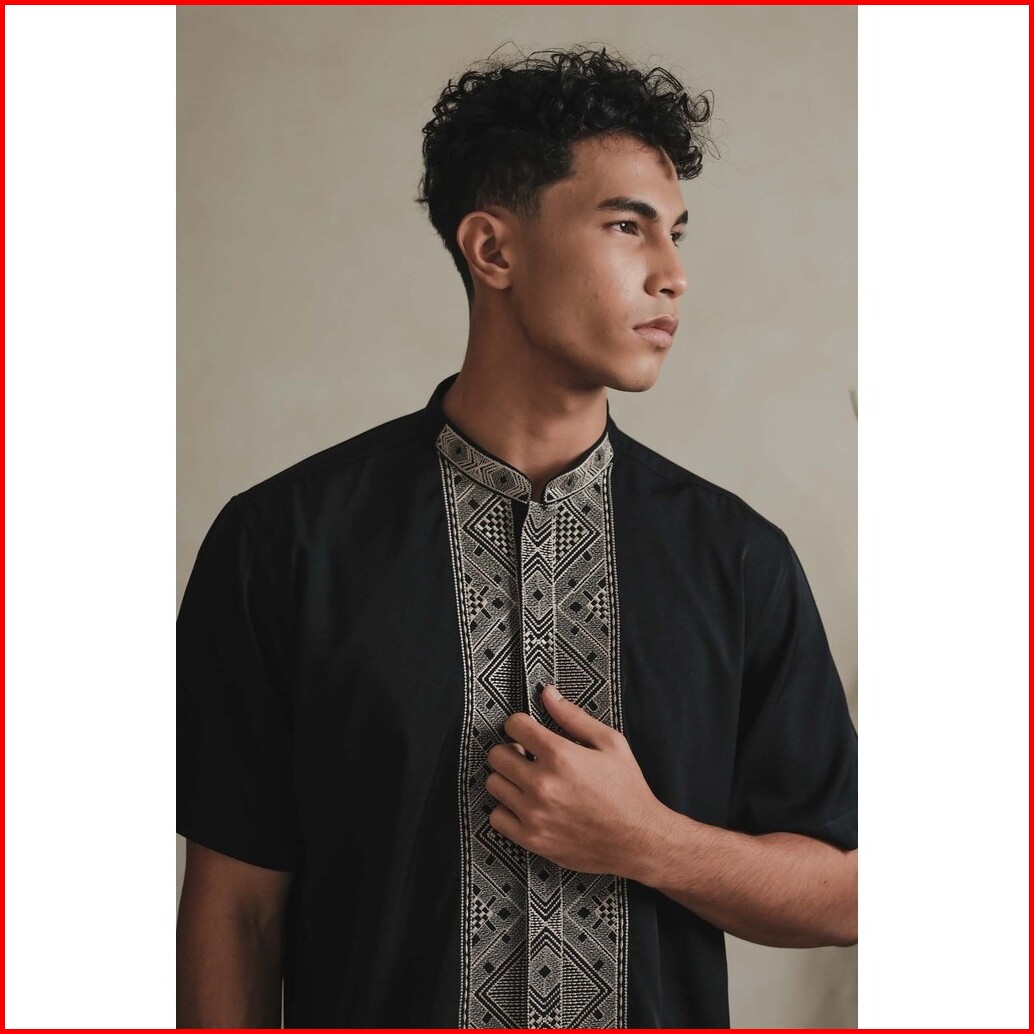 Larusso Kemeja Koko Bordir Lengan Pendek Pria - Navy Blue N005