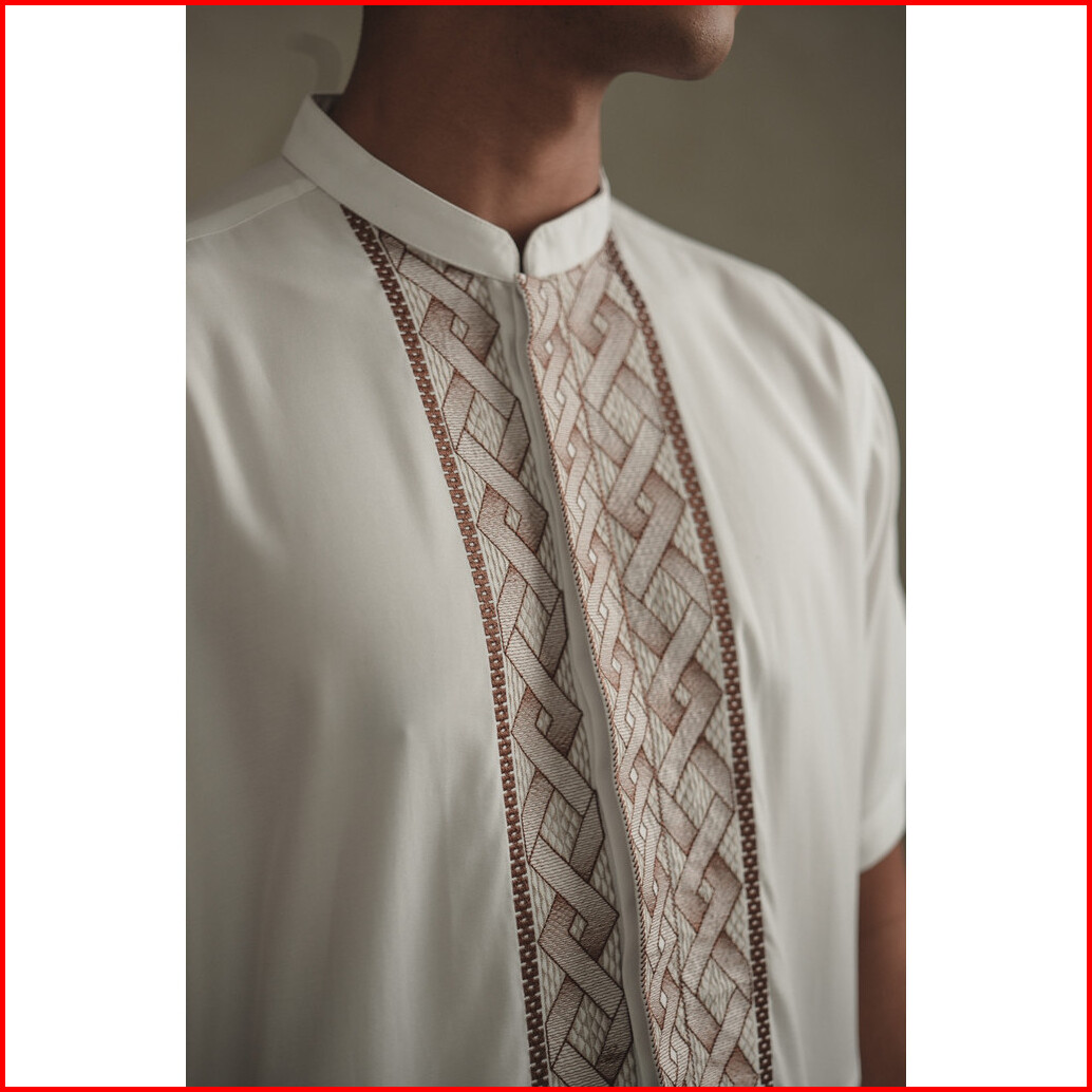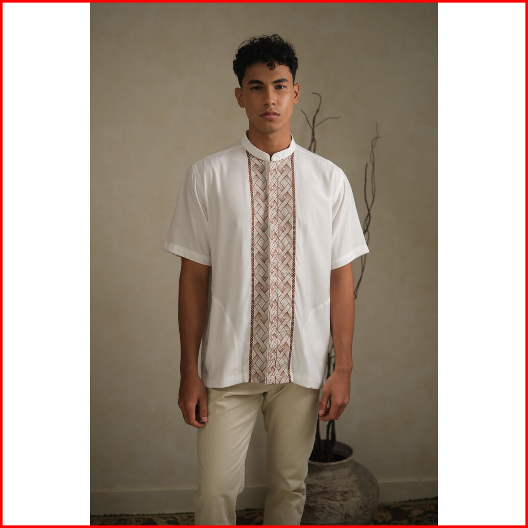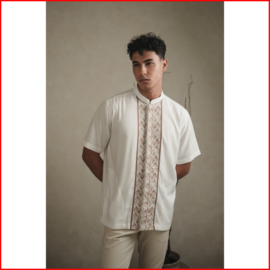 Larusso Kemeja Koko Bordir Lengan Pendek Pria - White Brick
