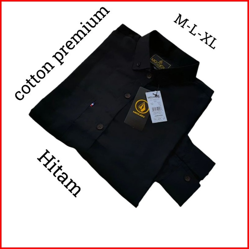 Kemeja Cowok Polos Lengan Panjang Slimfit Hem Pria Kantor Hitam Navy Putih