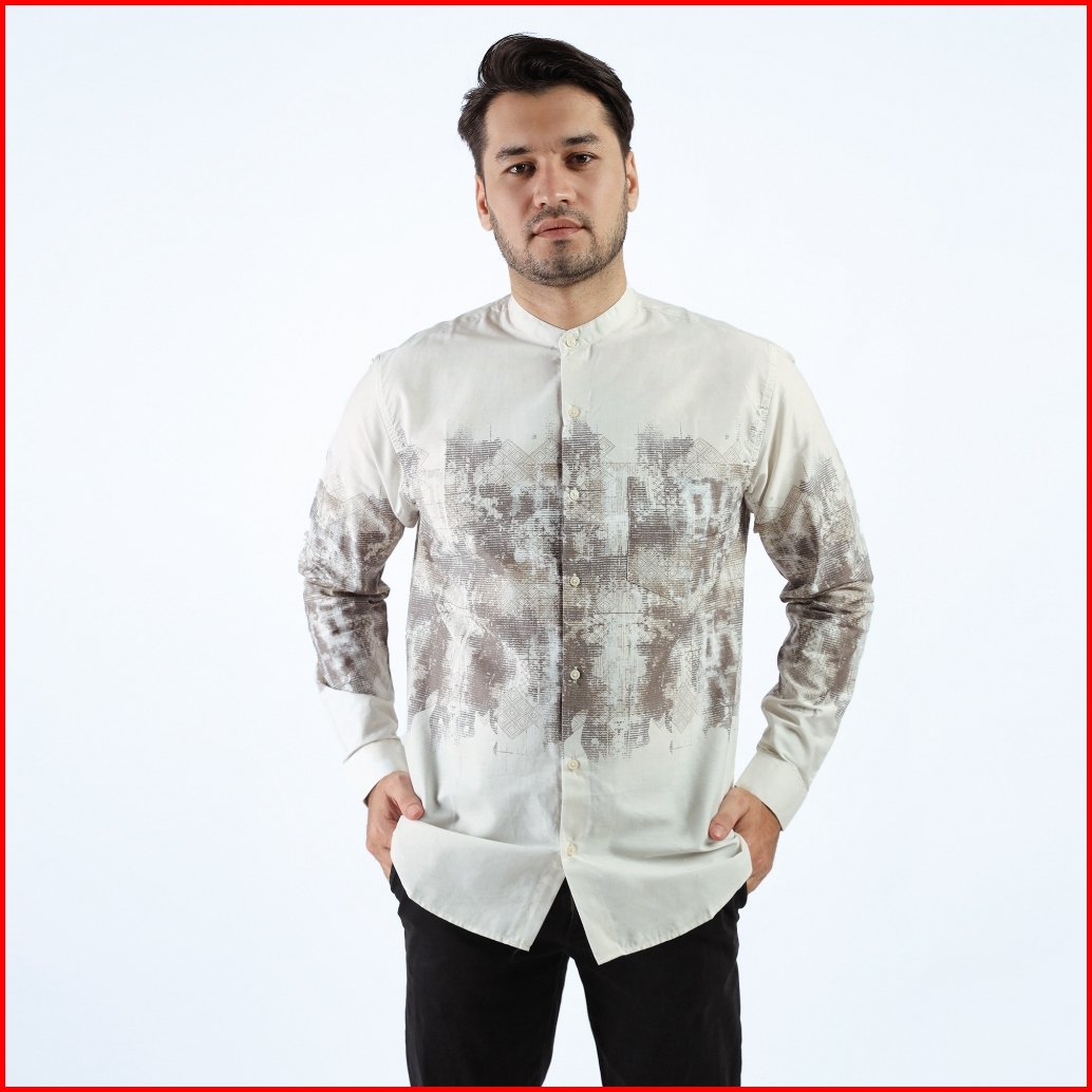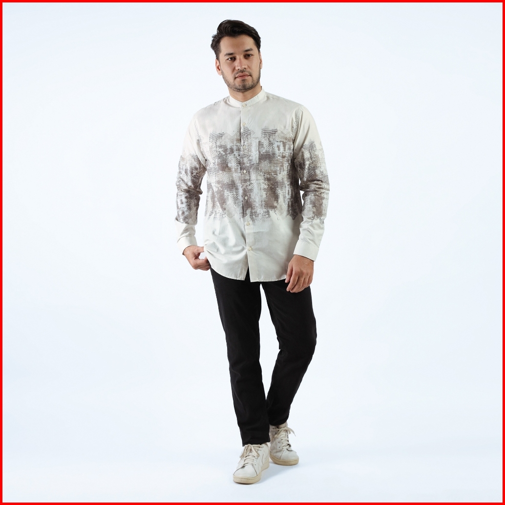 Larusso Dawn Of Time - Kemeja Koko Printing Pria Lengan Panjang - Kiwi
