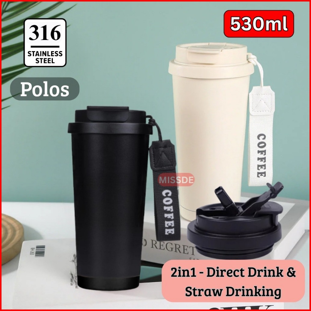 Tumbler Mug 2in1 Stainless Steel 530ml Tahan Panas Dingin Gelas Kopi Lucky Polos