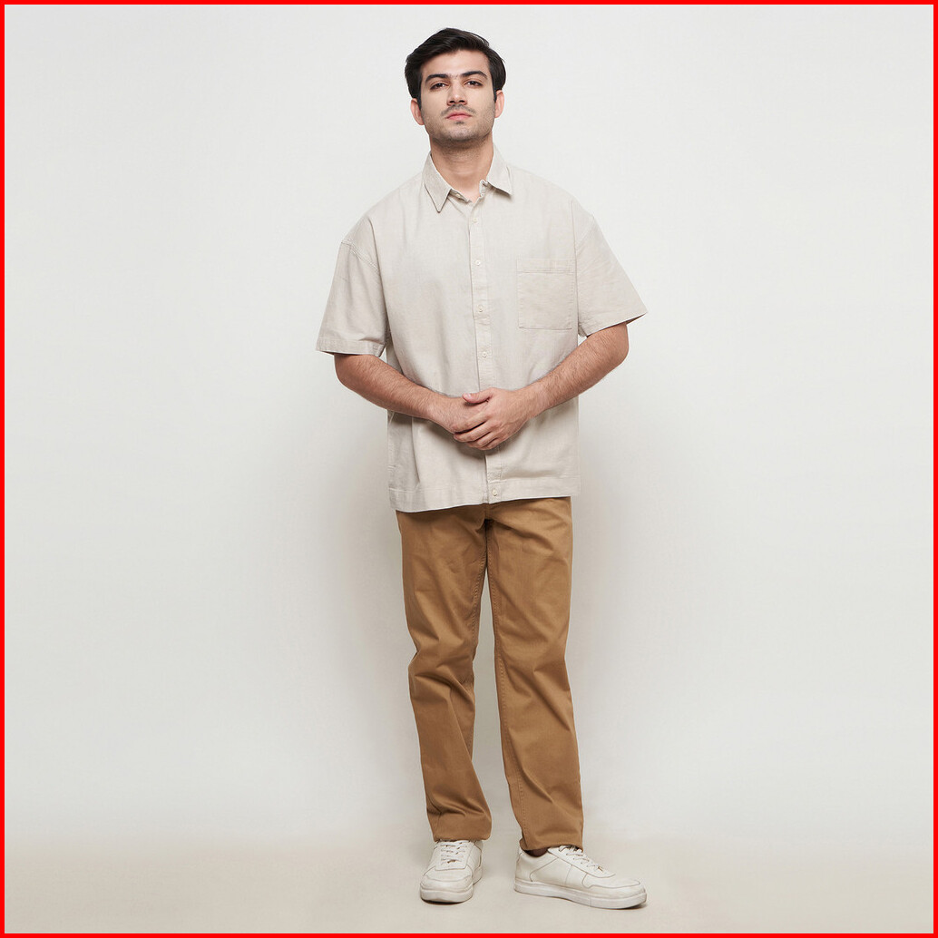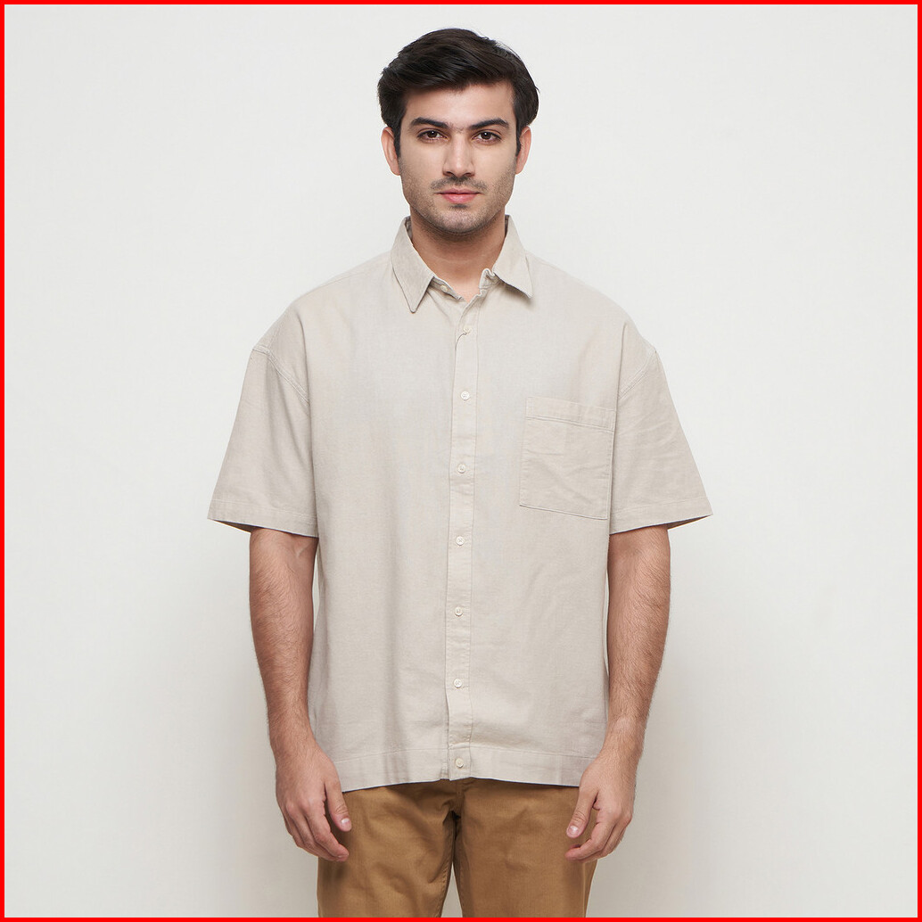 Larusso Kemeja Pria Basic Oversize Rami Lengan Pendek - Khaki N007