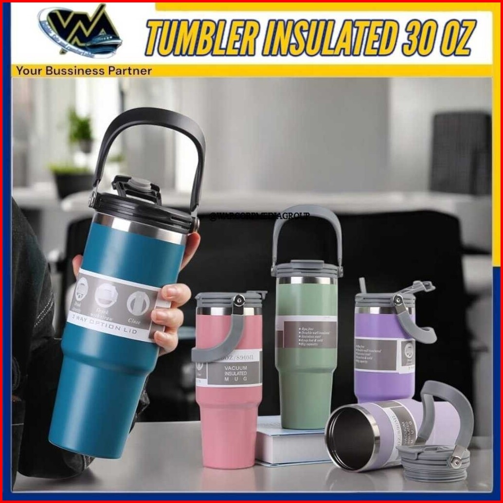 Wmedia Tumbler Insulated Stainless 2 Cara Minum Ukuran 20oz 30oz Termos Travel Insulated
