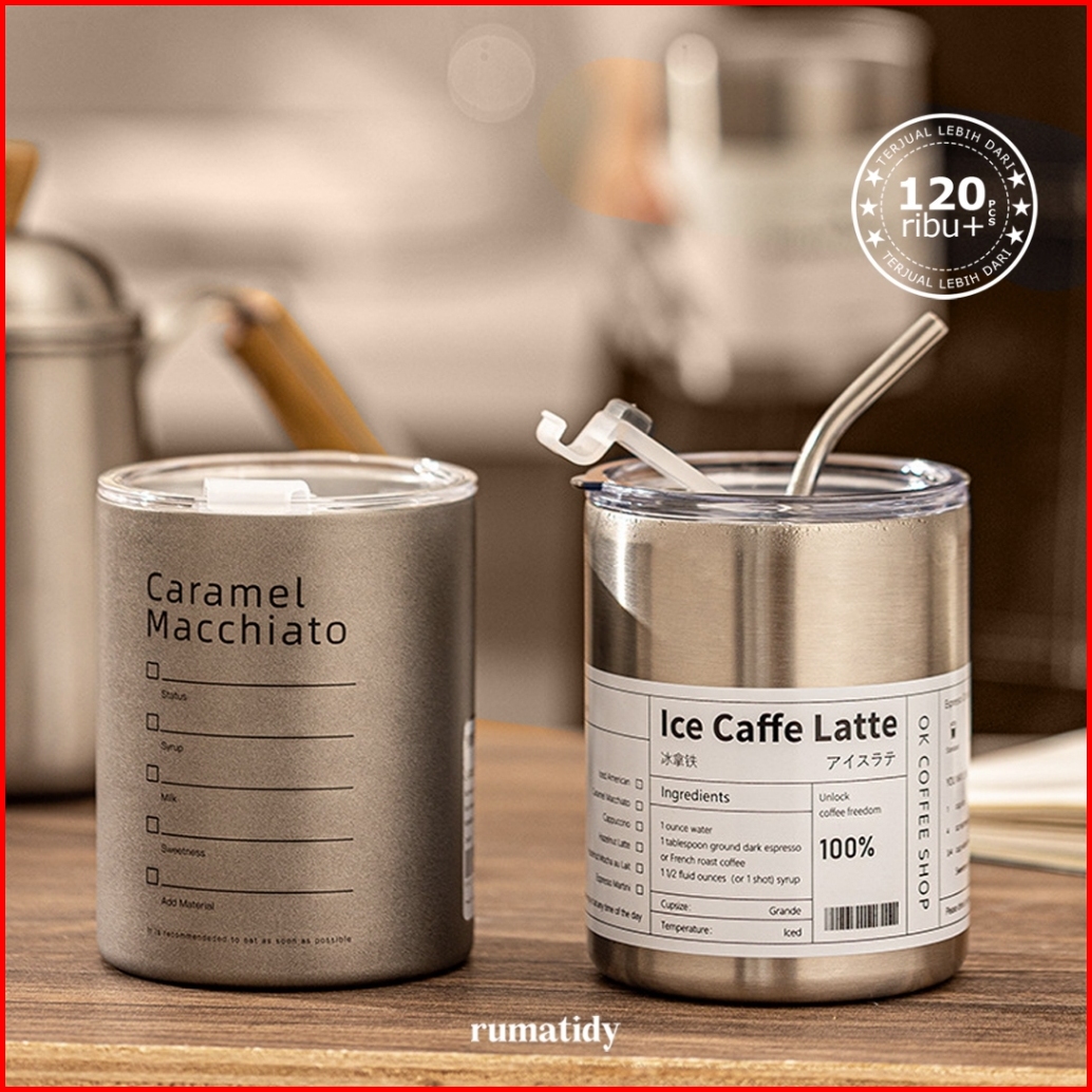 Rumatidyjoji Tumbler Stainless Steel Coffee Tea 360ml 600ml Aesthetic Botol Minum Kopi Teh