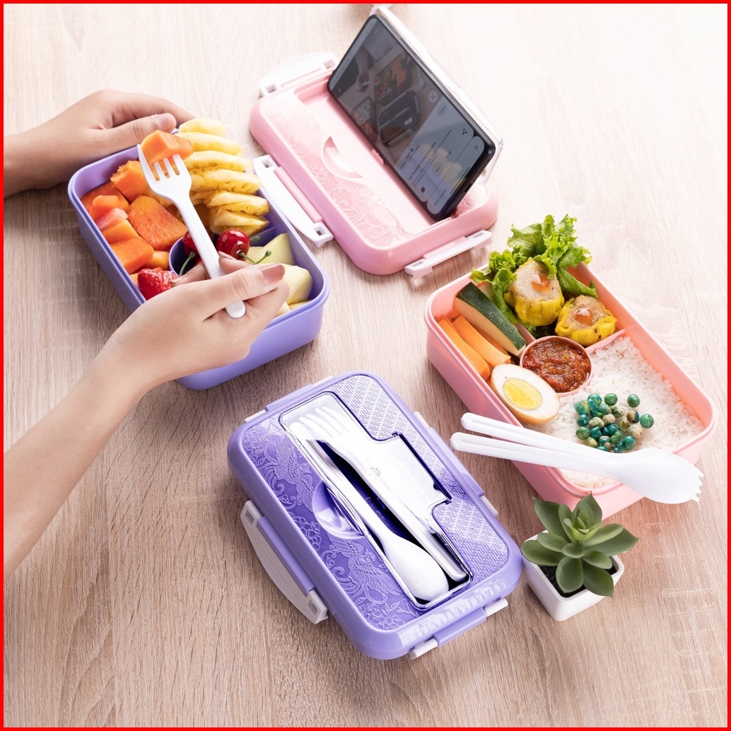 Lunch Box 4in1 1000ml Sendok Dan Sumpit Tepak Makan Wadah Bekal Tri J Lunch Box 4in1 Sendok Garpu
