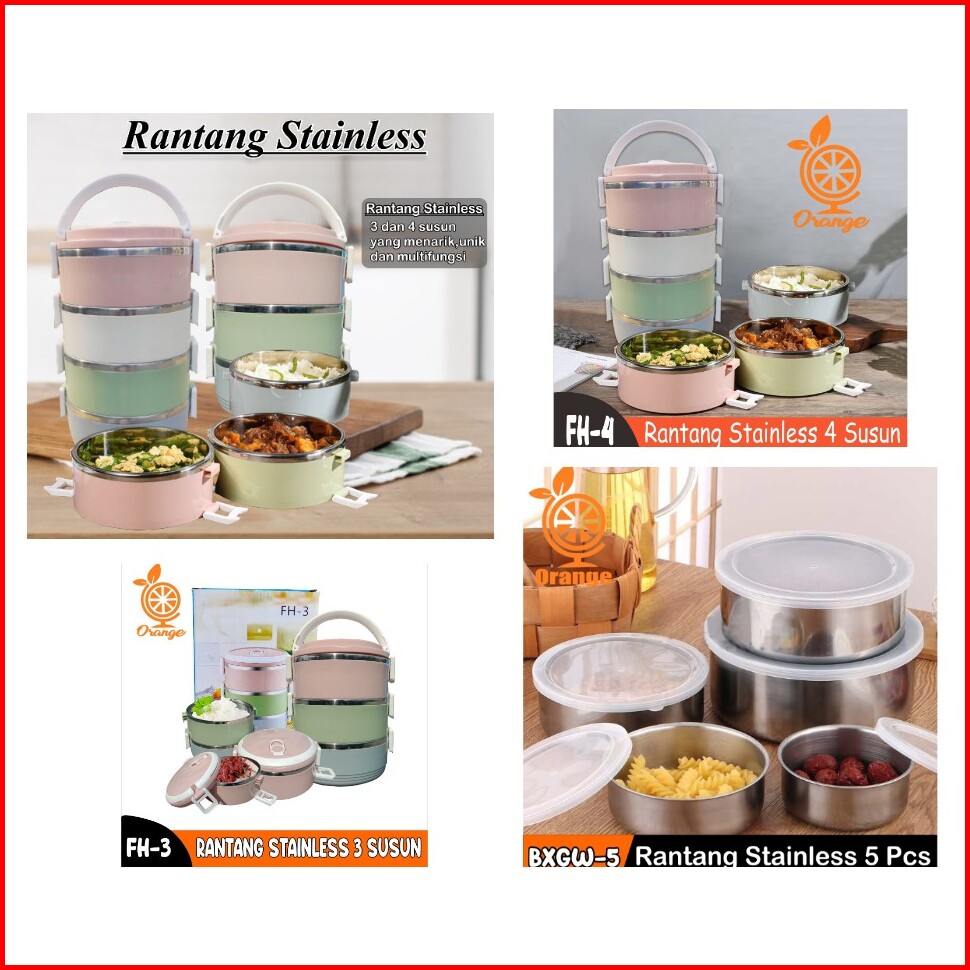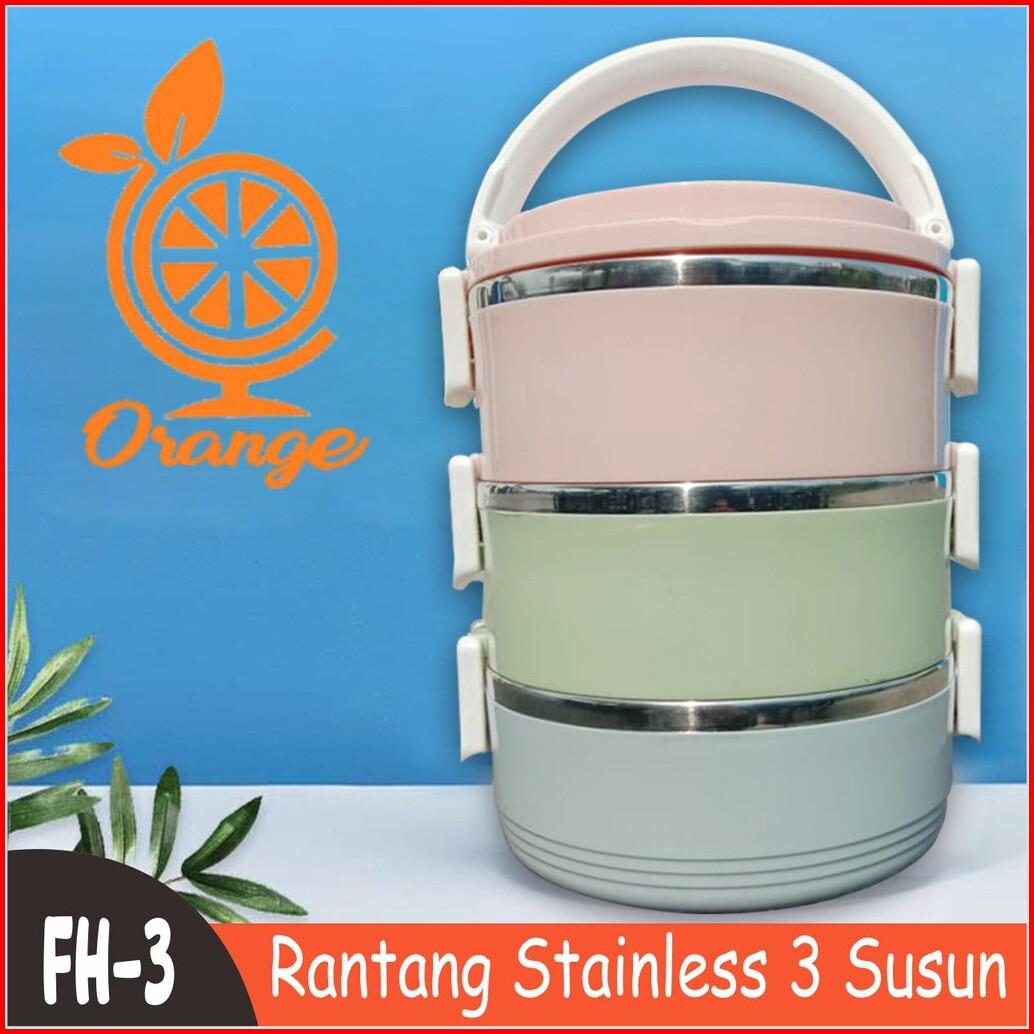Rantang Susun Bulat Kombinasi Warna Warni Polos Lunch Box Plastik Dan Stainless
