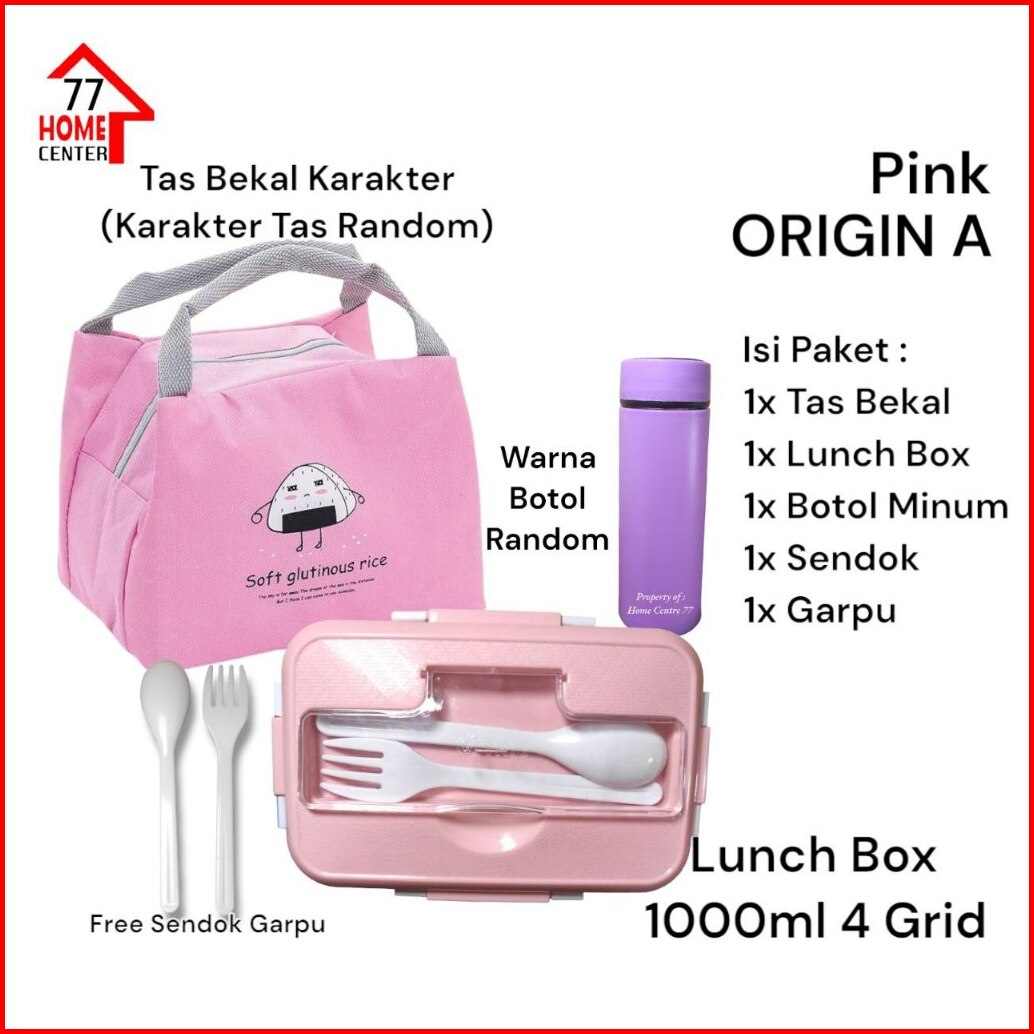 Origin A Set Kotak Makan Sendok Garpu Tas Bekal Lebih Besar Botol Minum Paket Set Kotak Bekal Makan 1000ml 4 Grid Lunch