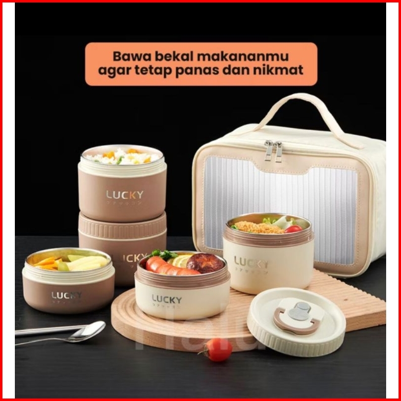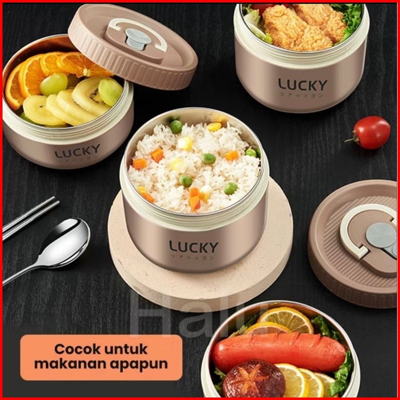 Round Lunch Box Tempat Makan Tahan Panas Kotak Makan Portable Stainless Steel 400 Ml 600 Ml.