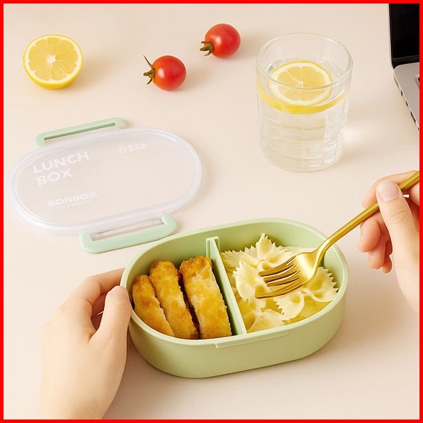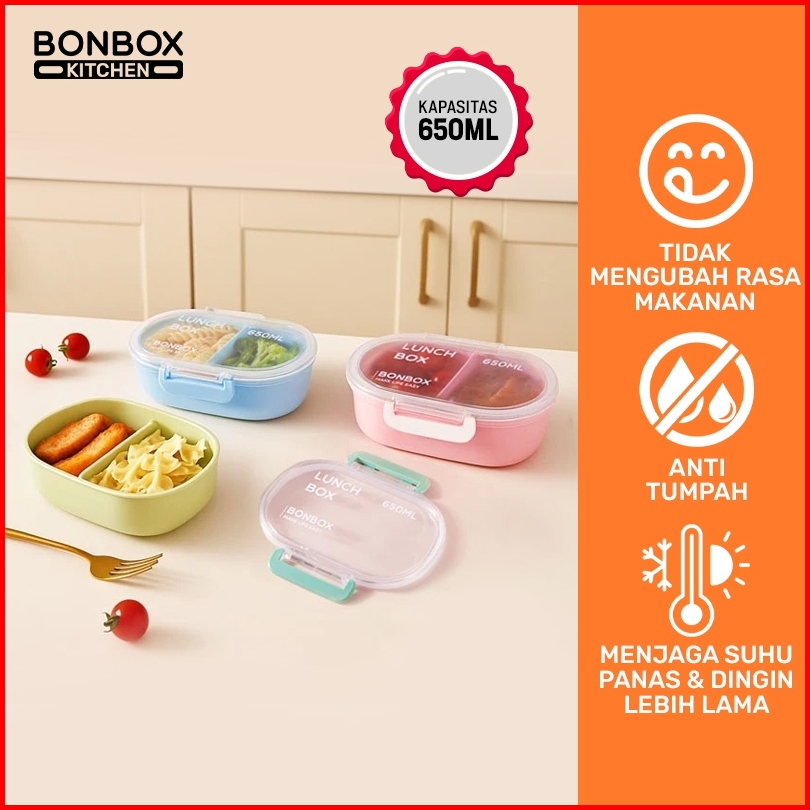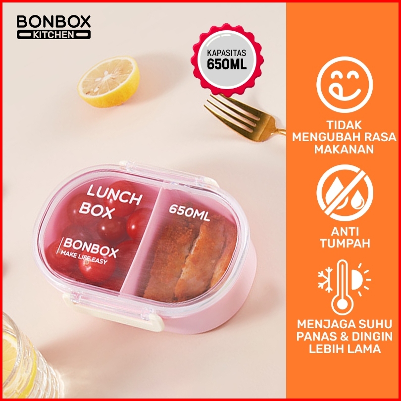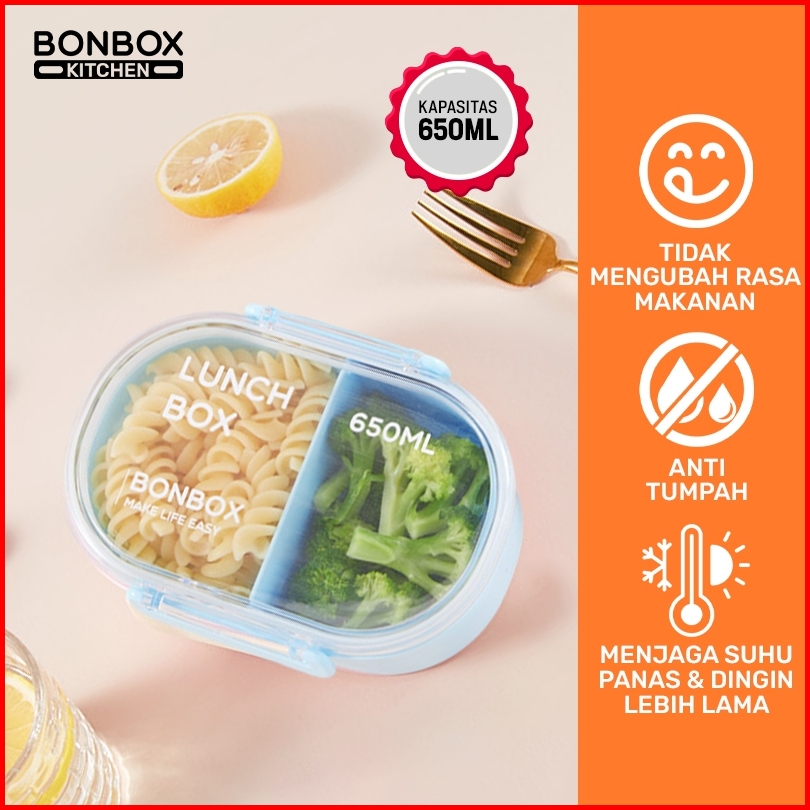 Bonbox Kotak Makan Siang Kotak Bekal Oval 2 Kompartemen 650ml Lunch Box Anti Bocor Food Grade Bpa Free Bte50401