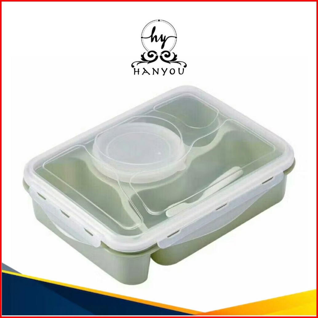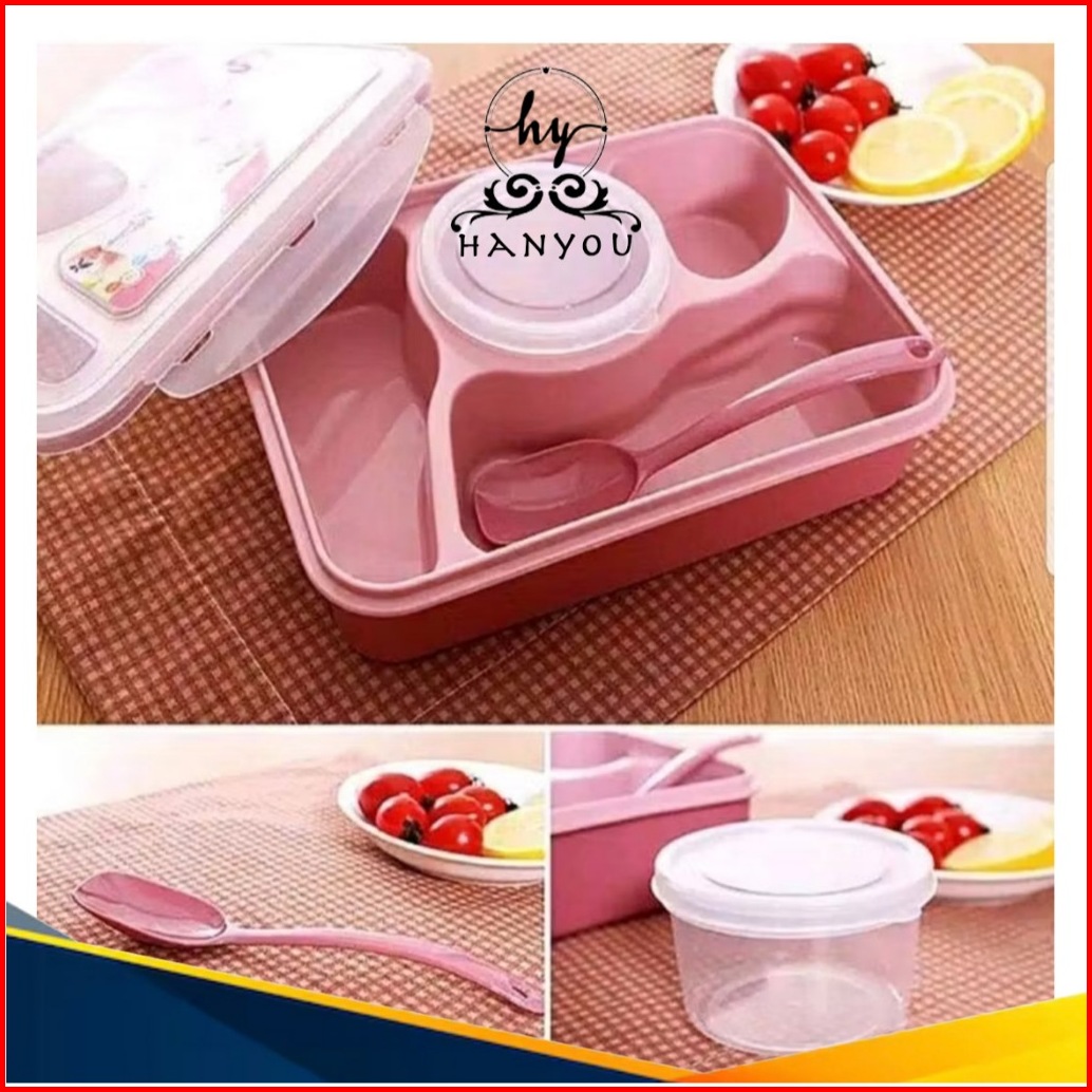 Hanyou - Lunch Box 4 Sekat Kotak Bekal 1000 Ml Anti Tumpah Kotak Makan Siang Sekat Empat Mangkok Sup