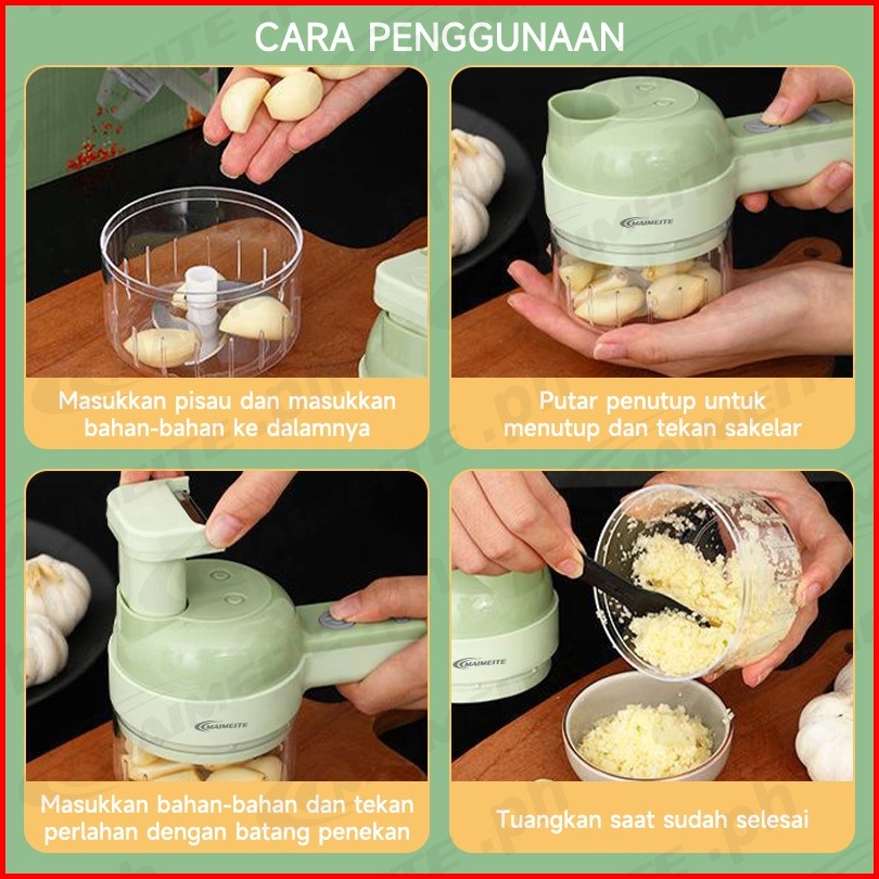 Maimeite Food Chopper Blender 4-in-1 - Alat Potong Mixer Makanan Nirkabel Charging Cepat Serbaguna Multifungsi Potong Sa