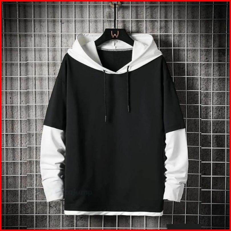 Sweater Kaos Hoodie Pria Lengan Panjang Double Layer Sweater Hoodie Kaos Kupluk