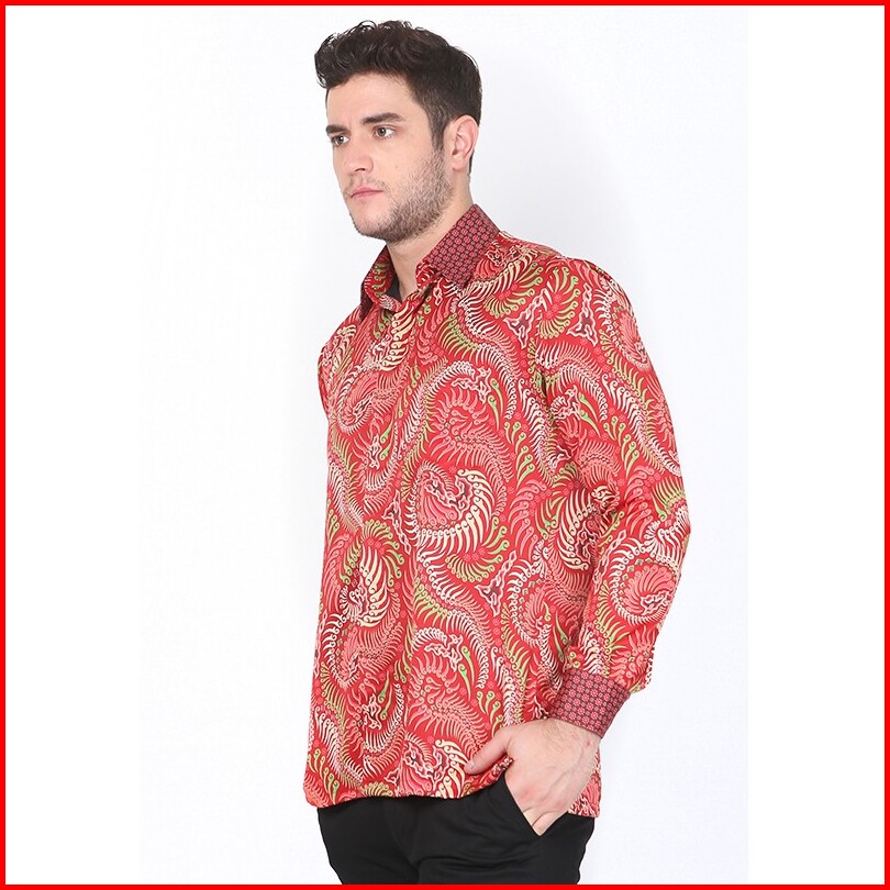 Hadinata Batik Pria Kemeja Panjang Shaquille Red