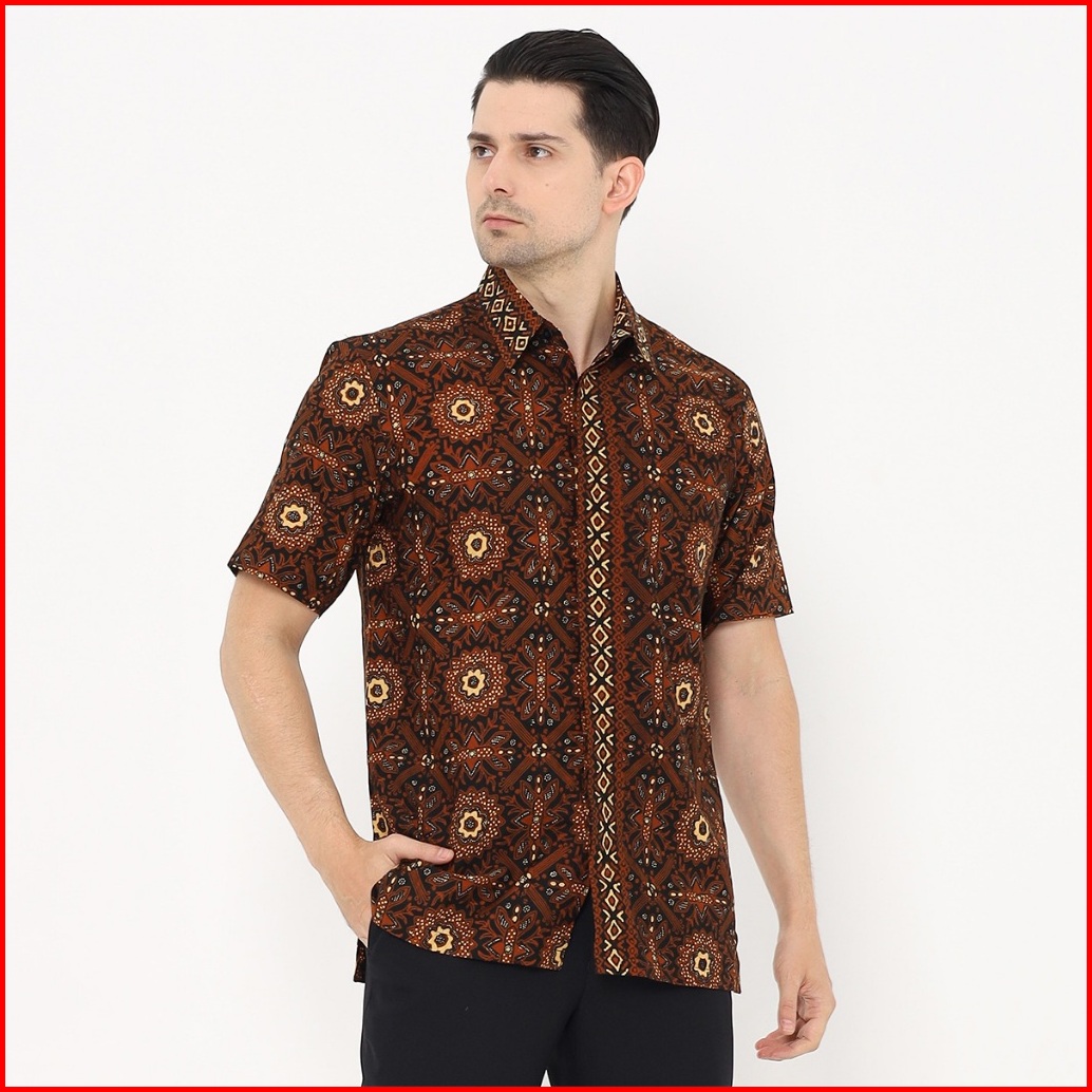 Hadinata Batik Pria Kemeja Pendek Cap Semi Tulis Baskara