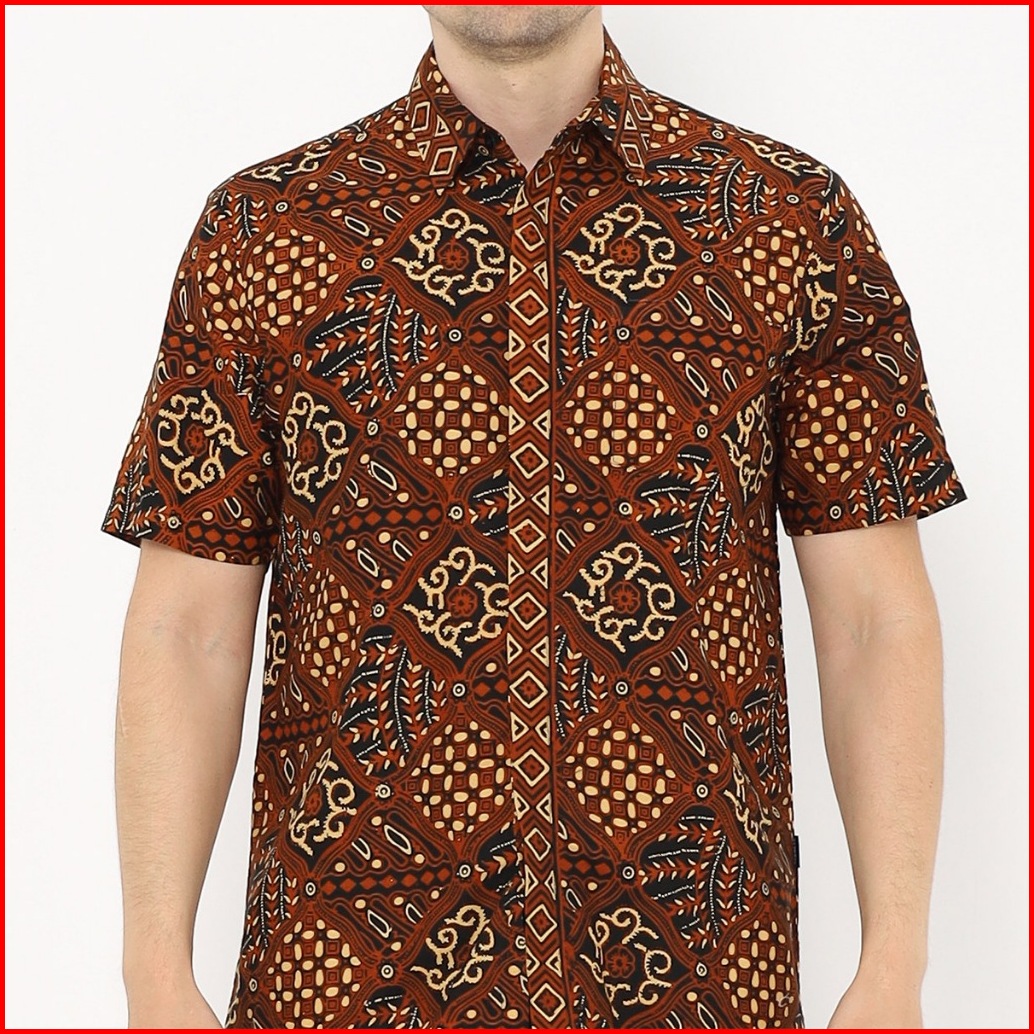 Hadinata Batik Pria Kemeja Pendek Cap Semi Tulis Handaru