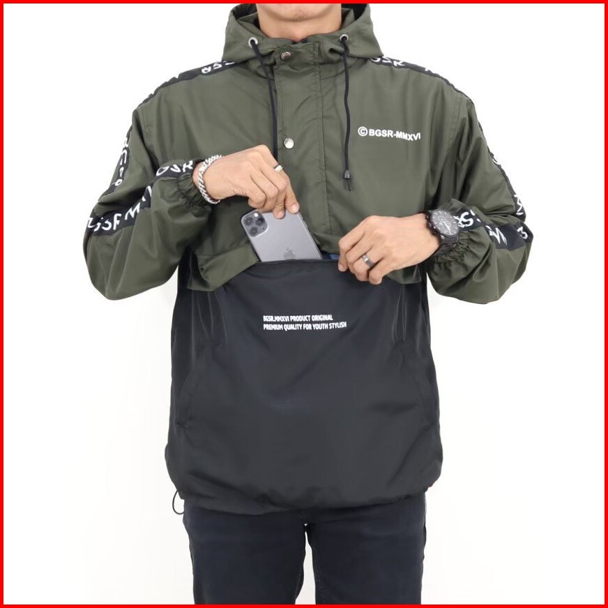 Jaket Parasut Cougle Bgsr Waterproof Tebal Termurah Jaket Cagoule Pria Wanita Saku Depan