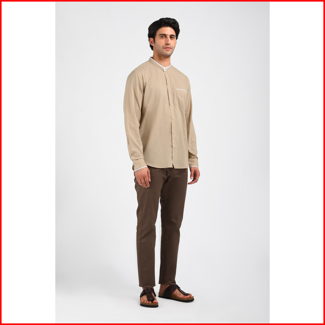 Moc Kemeja Shanghai Lengan Panjang Pria Aldino-khaki