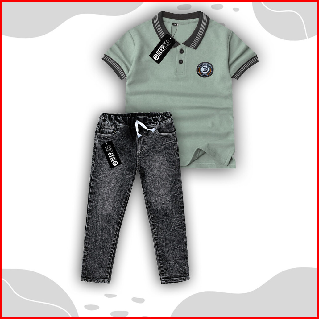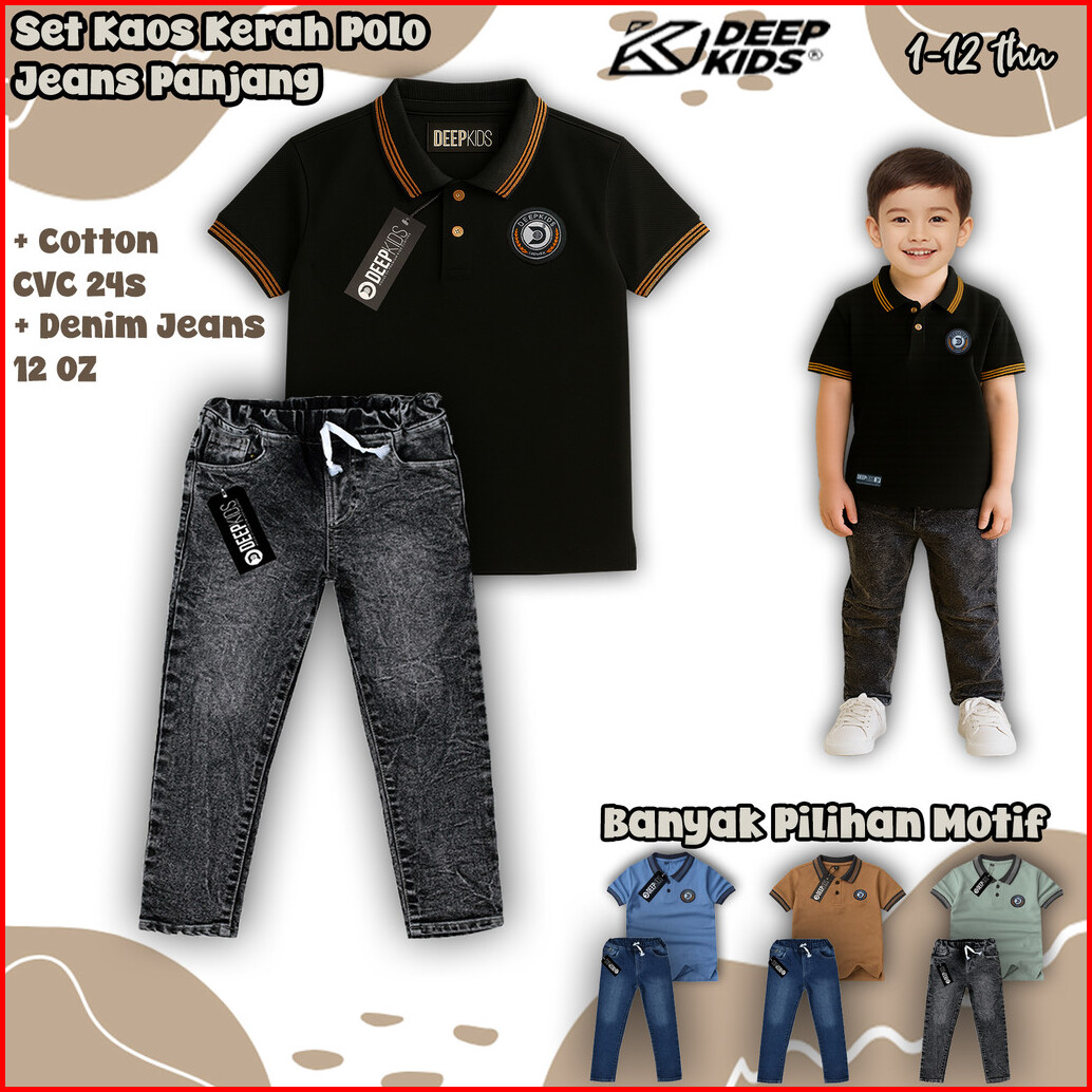 Deepkids Setelan Anak Laki Laki Distro Premium Kaos Kerah Polo Celana Jeans Panjang Usia 1 2 3 4 5 6 7 8 9 10 11 12 Tahu