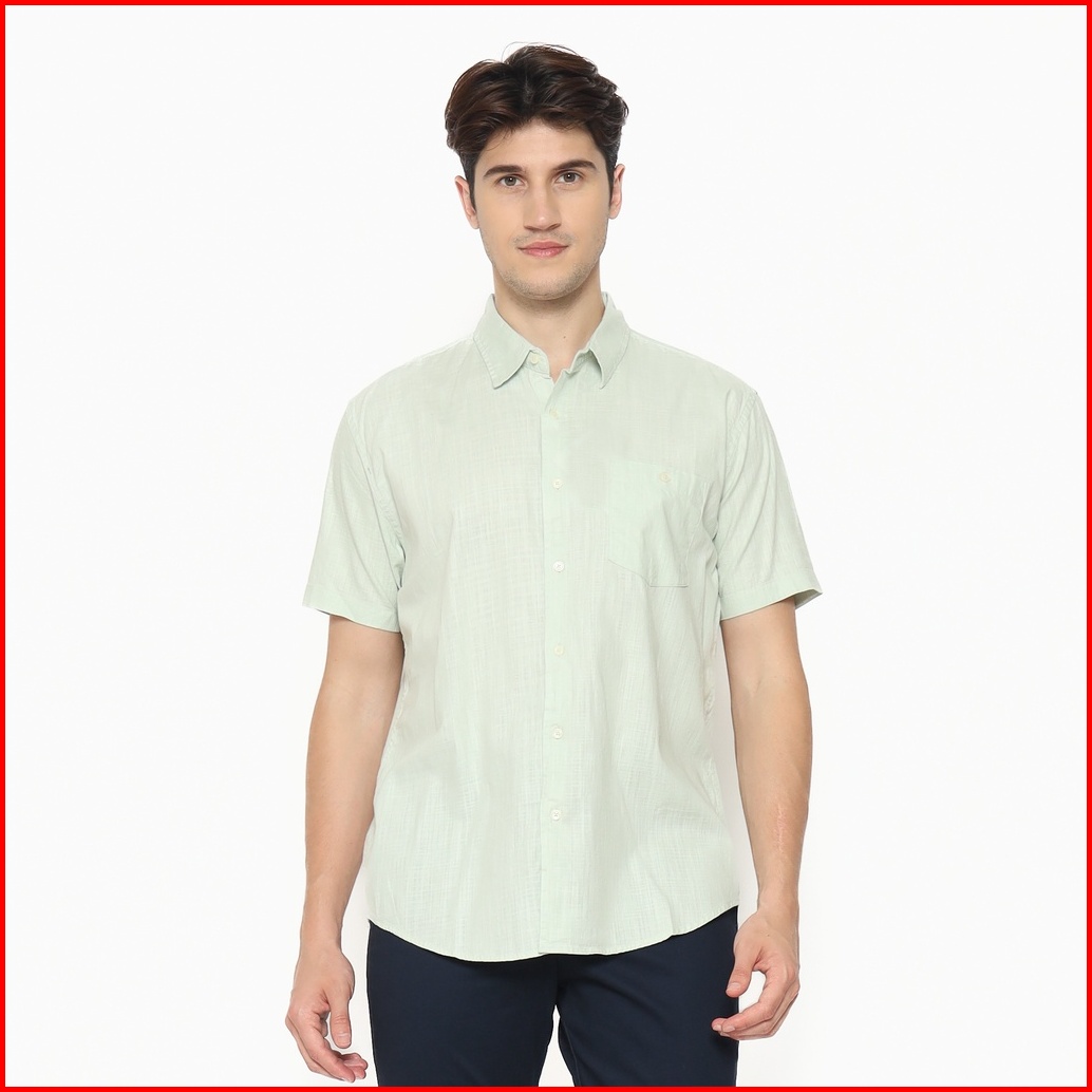 Larusso Big Size Textured Short Sleeves Basic Shirt Mint Green M010