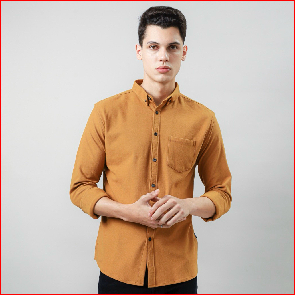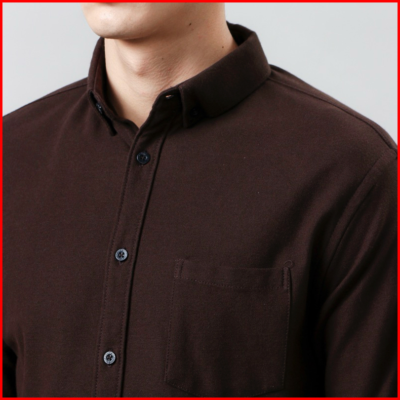 Kemeja Pria Lengan Panjang Cokelat Slim Fit Original Cotton Pique Best Quality