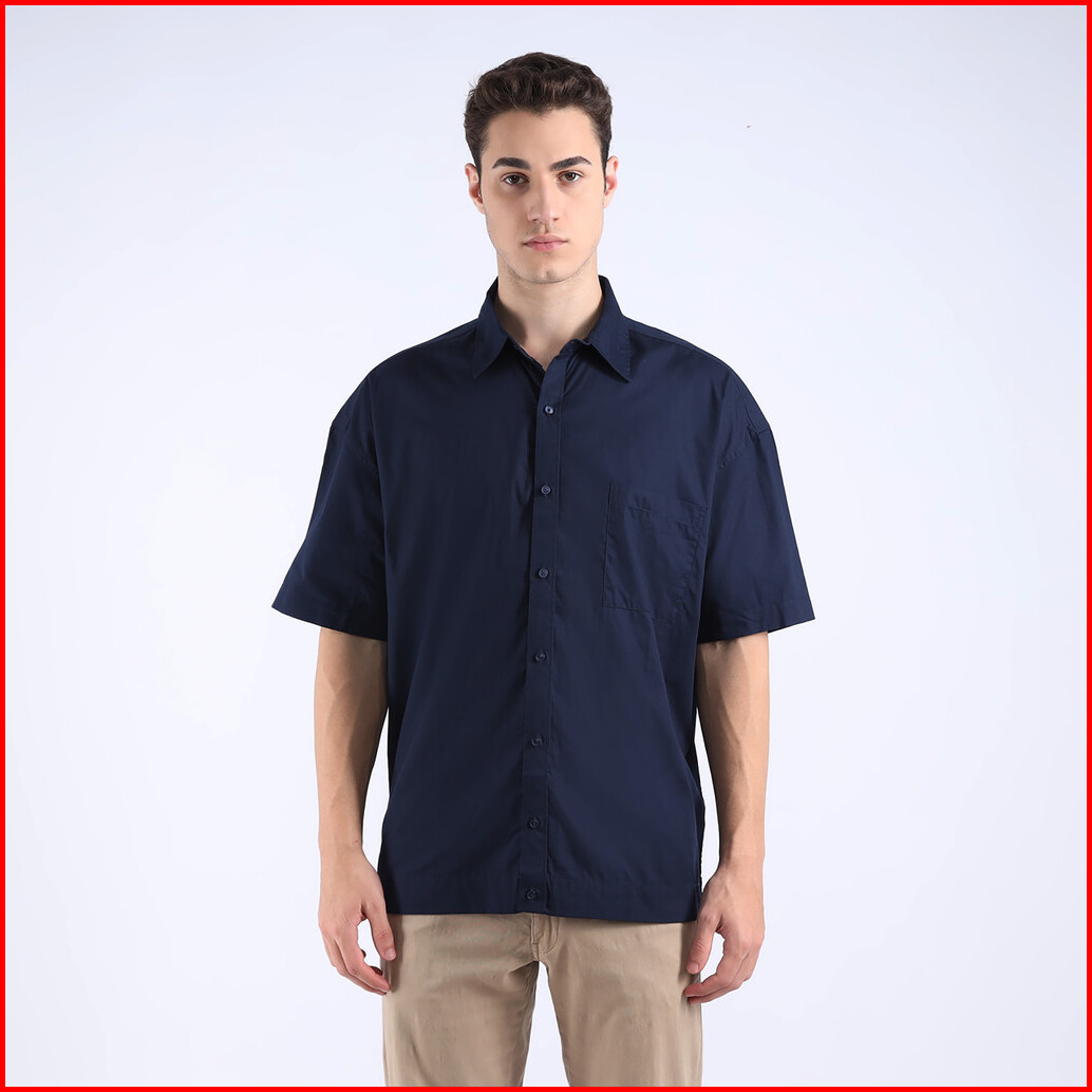 Facility By Larusso - Kemeja Pria Basic Poplin Oversize Lengan Pendek - Navy