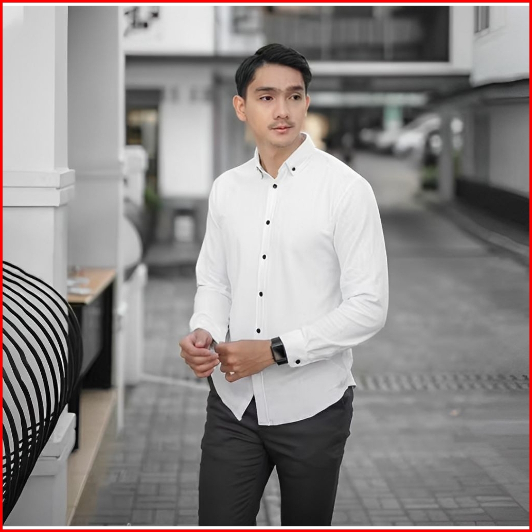 Kemeja Pria Slimfit Lengan Panjang Kemeja Pria Slimfit Basic Premium Hitam Putih