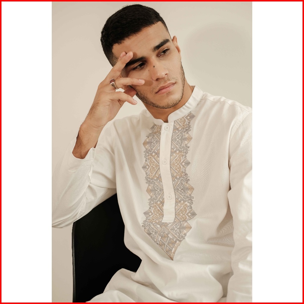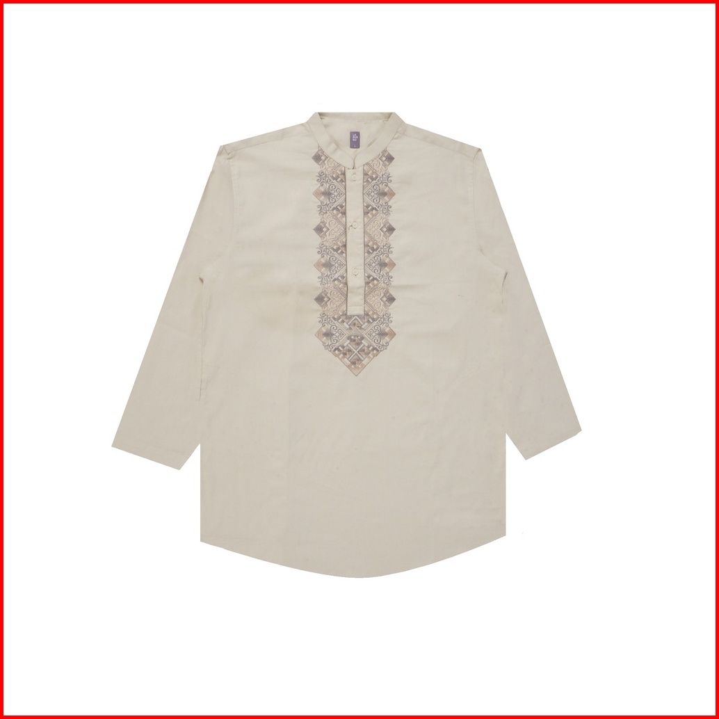Larusso Kemeja Koko Kurta Bordir Panjang - White L001