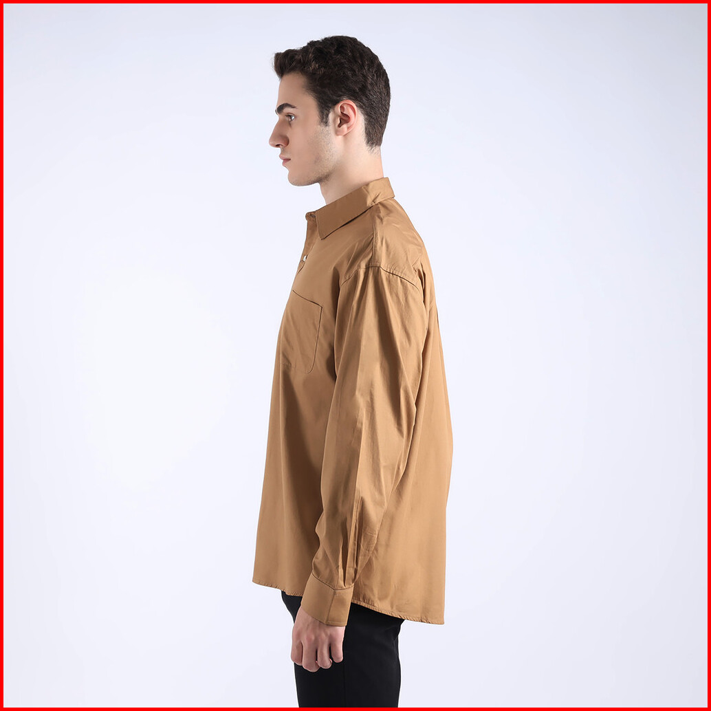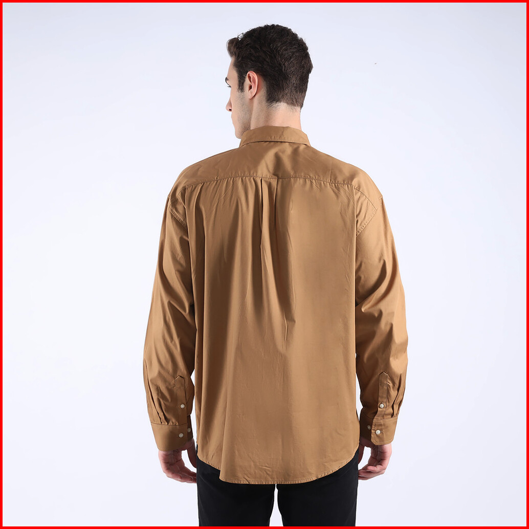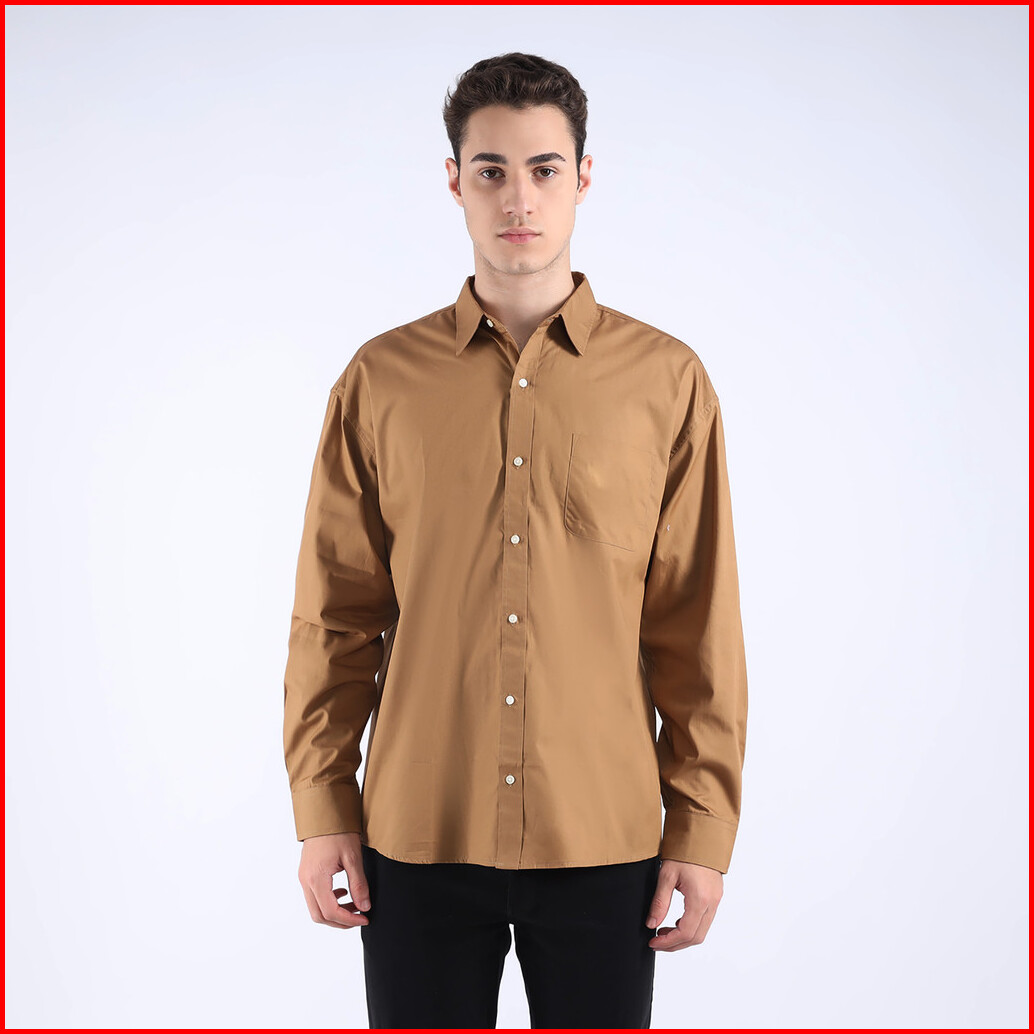 Facility By Larusso - Kemeja Pria Basic Poplin Oversize Lengan Panjang - Medium Brown