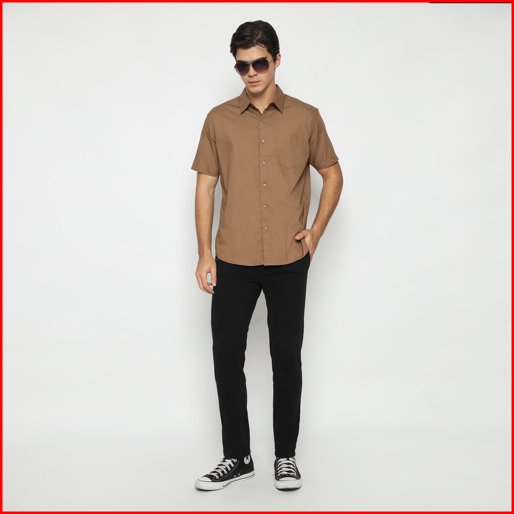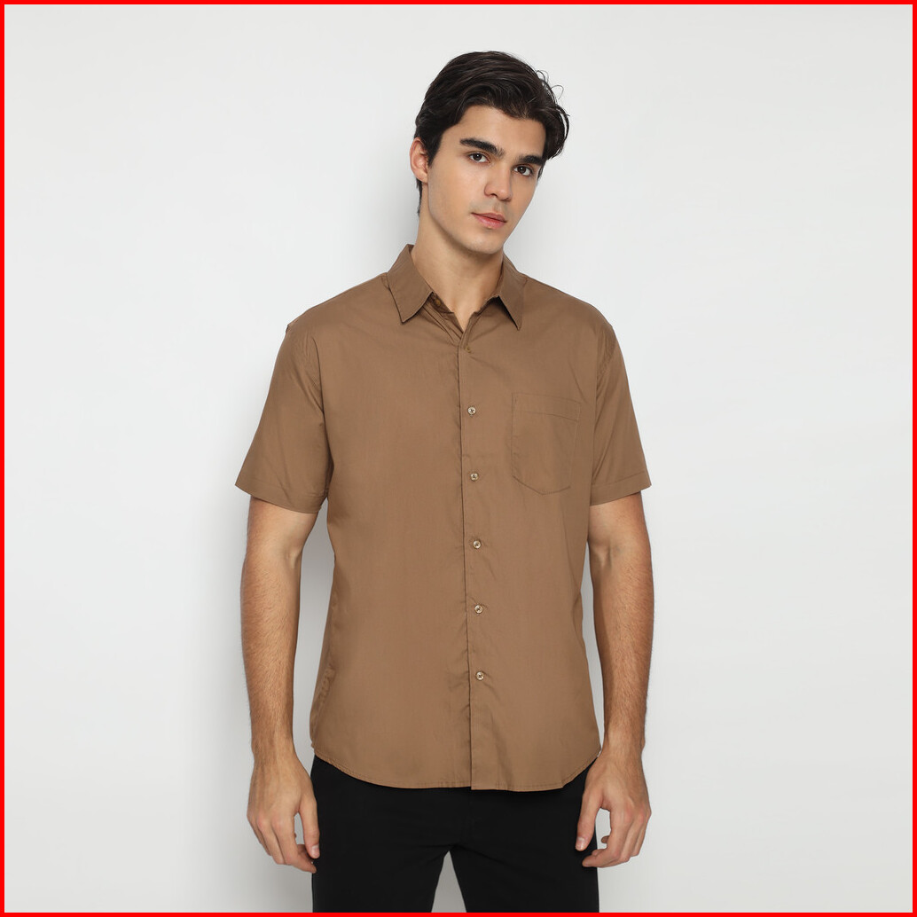 Larusso - Poplin Short Sleeved Basic Shirt - Brown